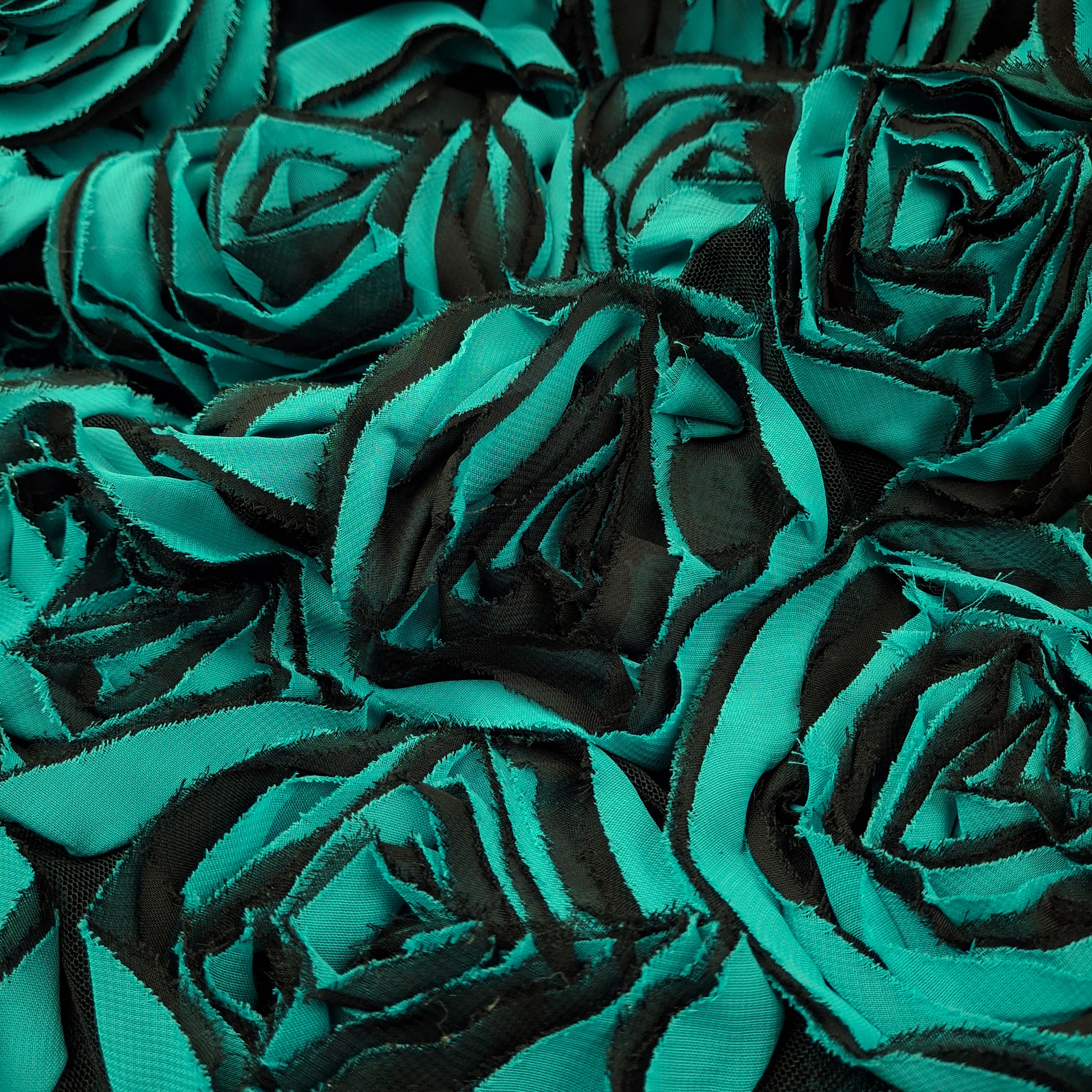 3D Alkalmi tüll – Nagyméretű türkiz-fekete virágokkal