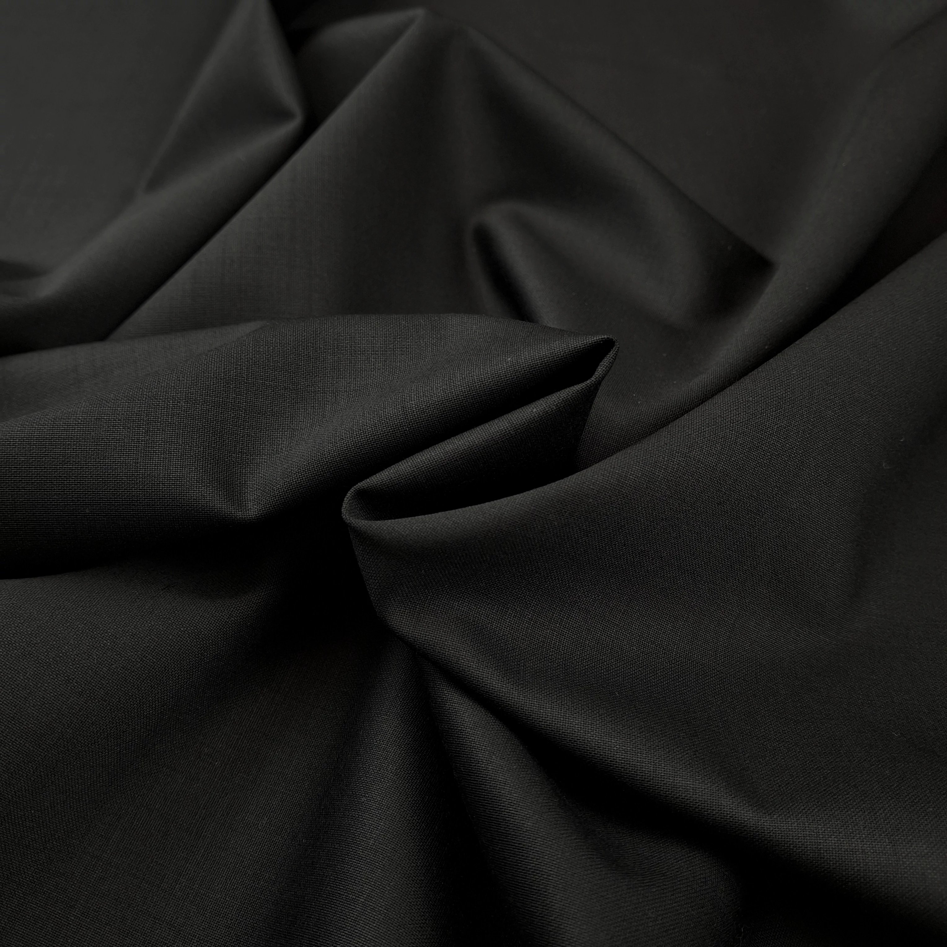 Alkalmi gyapjú szövet méteráru fekete színben. Kellemes tapintású, szép esésű, minimális mértékben elasztikus, strapabíró anyag. Sima, egyenletes felületű, bőrrel érintkezve kellemes viseletet biztosít. Közepesen vékony, mégis dús hatású anyag. Klasszikus alkalmi férfi öltöny szövet.