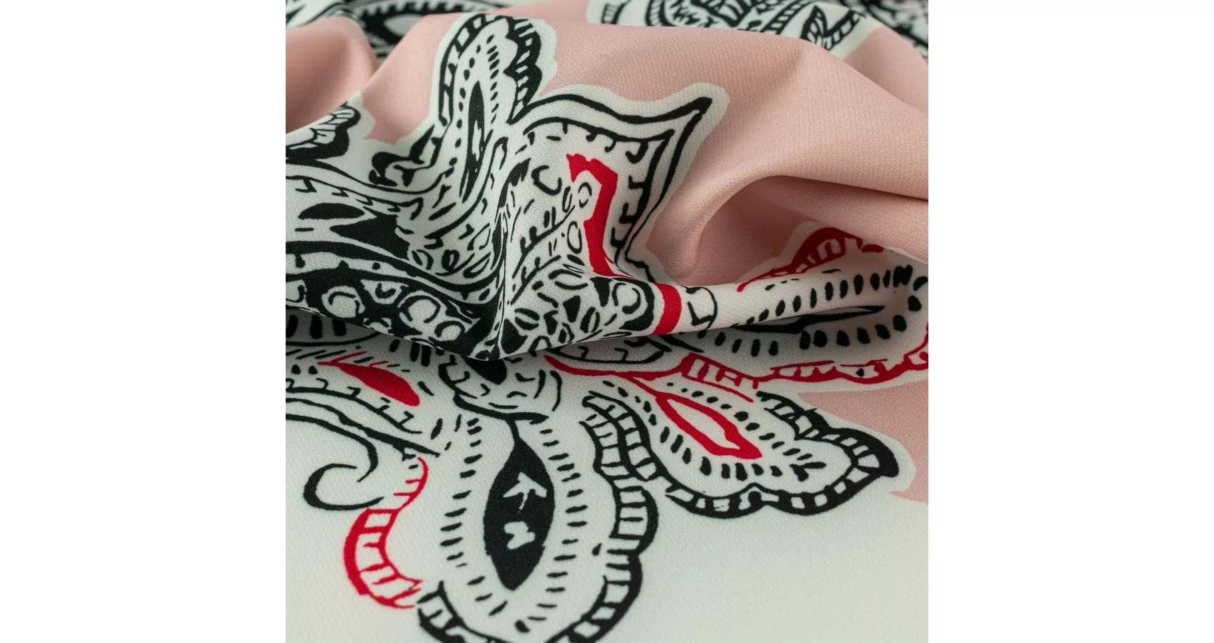 Barbi crepe méteráru fehér és púder rózsaszín alapon török stílusú virágos mintával. Közepesen vastag szövet, melynek felülete sima, esése szép. Kellemes tapintású, mindkét irányban rugalmas matt anyag, mely elegáns ruhának és kényelmes fellépő ruha alapanyagának is tökéletesen alkalmas. Felhasználás előtt beavatandó.