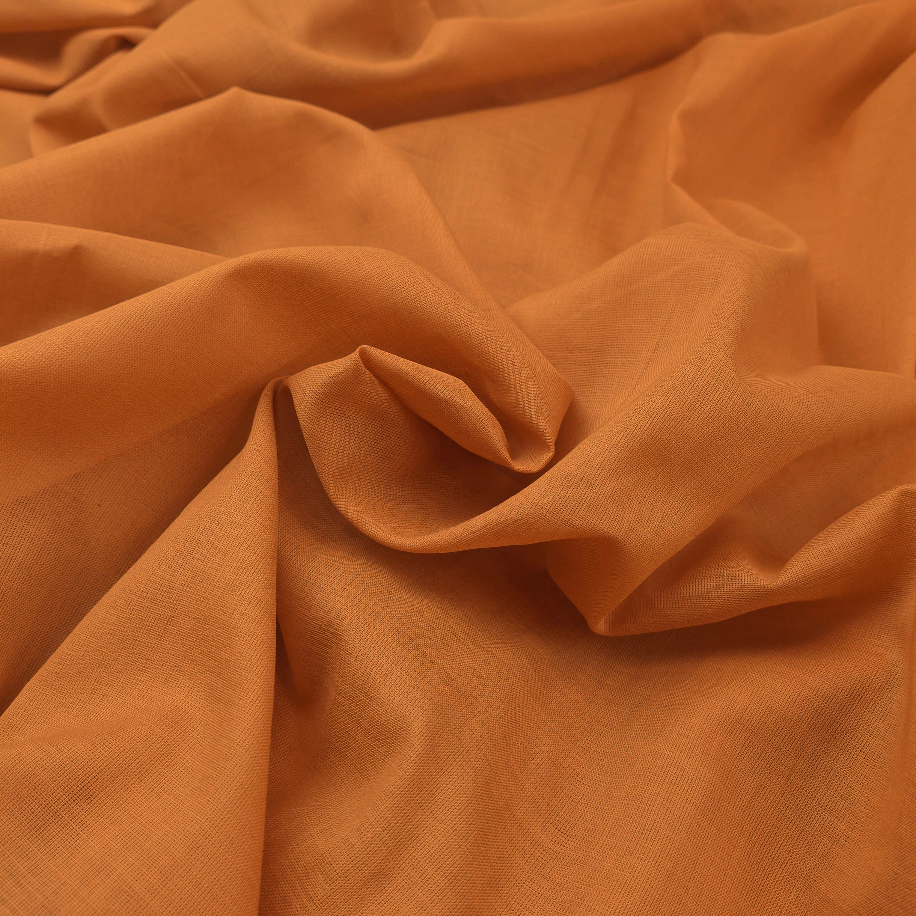 Batiszt méteráru karamellbarna színben. Nem rugalmas, szép esésű, vékony nyári anyag. Tapintása puha, nagyon kellemes viseletet biztosító, jól szellőző textil. Felhasználás előtt beavatandó.