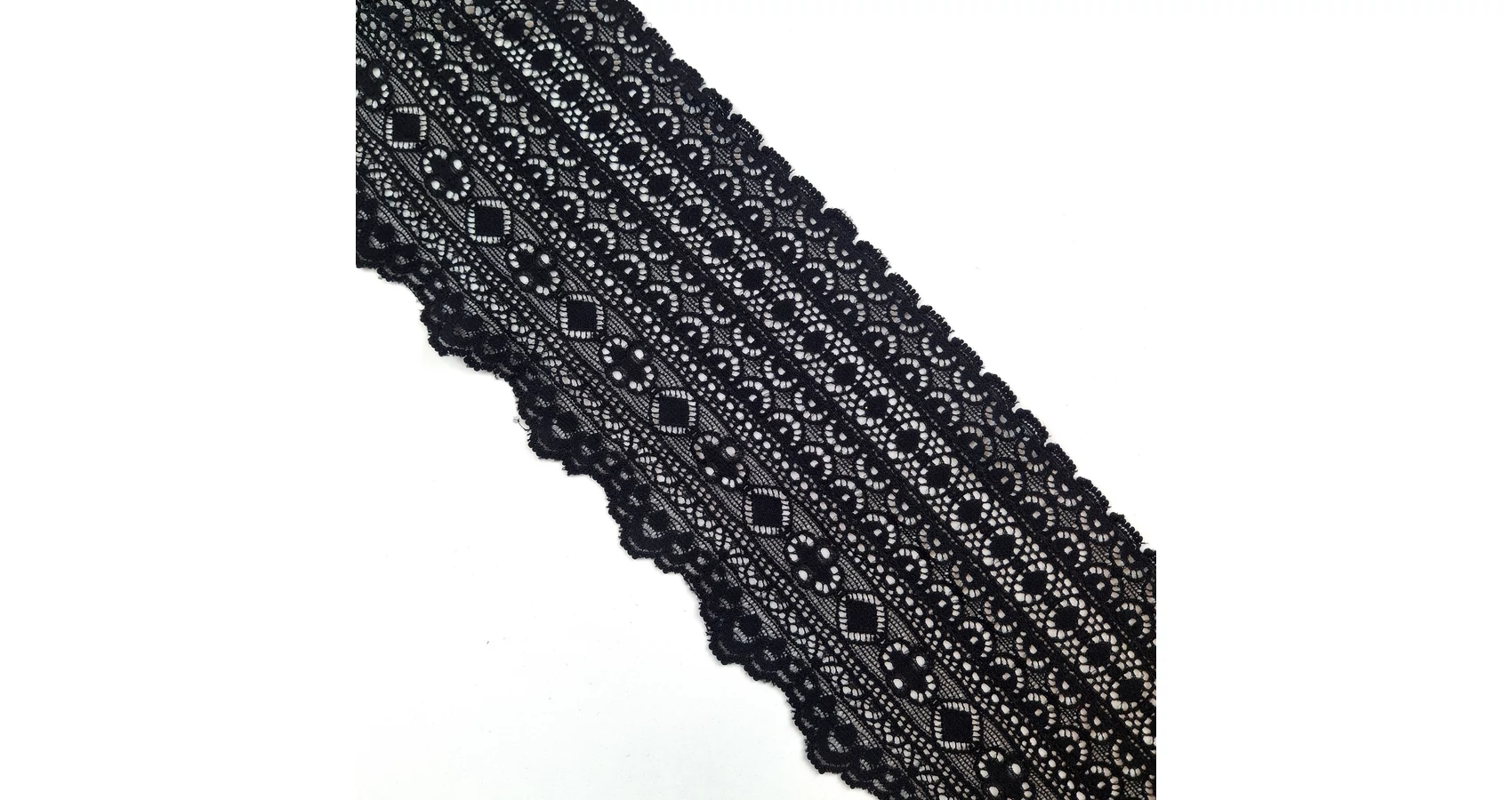 Csipke szalag – Fekete színben, elasztikus, 11,5 cm