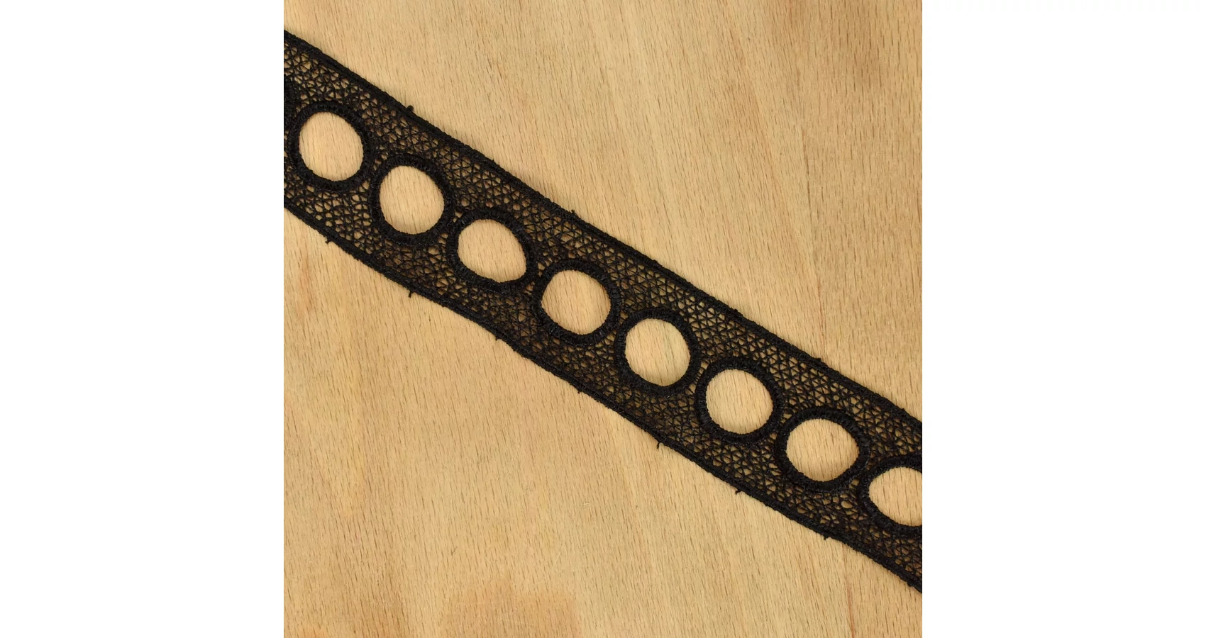 Csipke szalag – Fekete színben, középen kör mintával, 4cm
