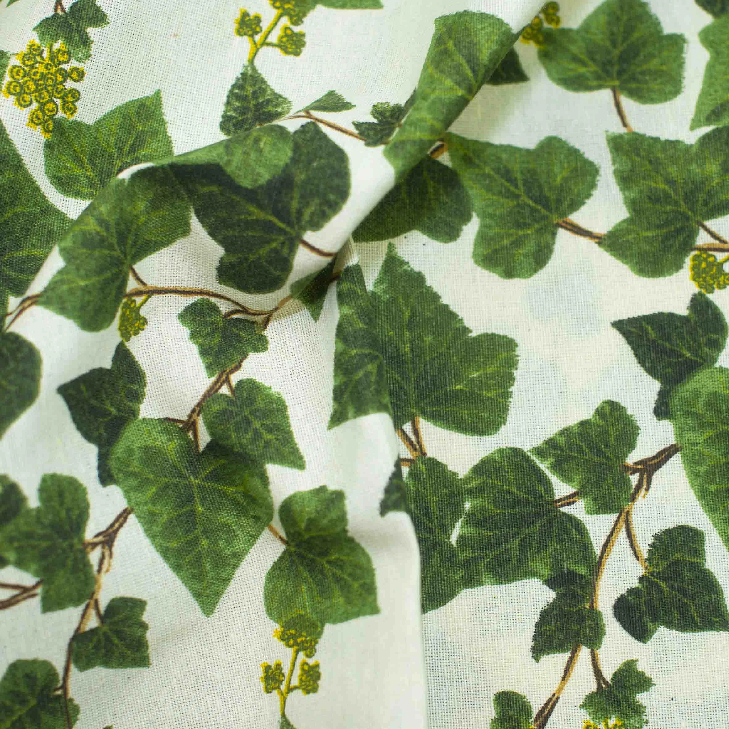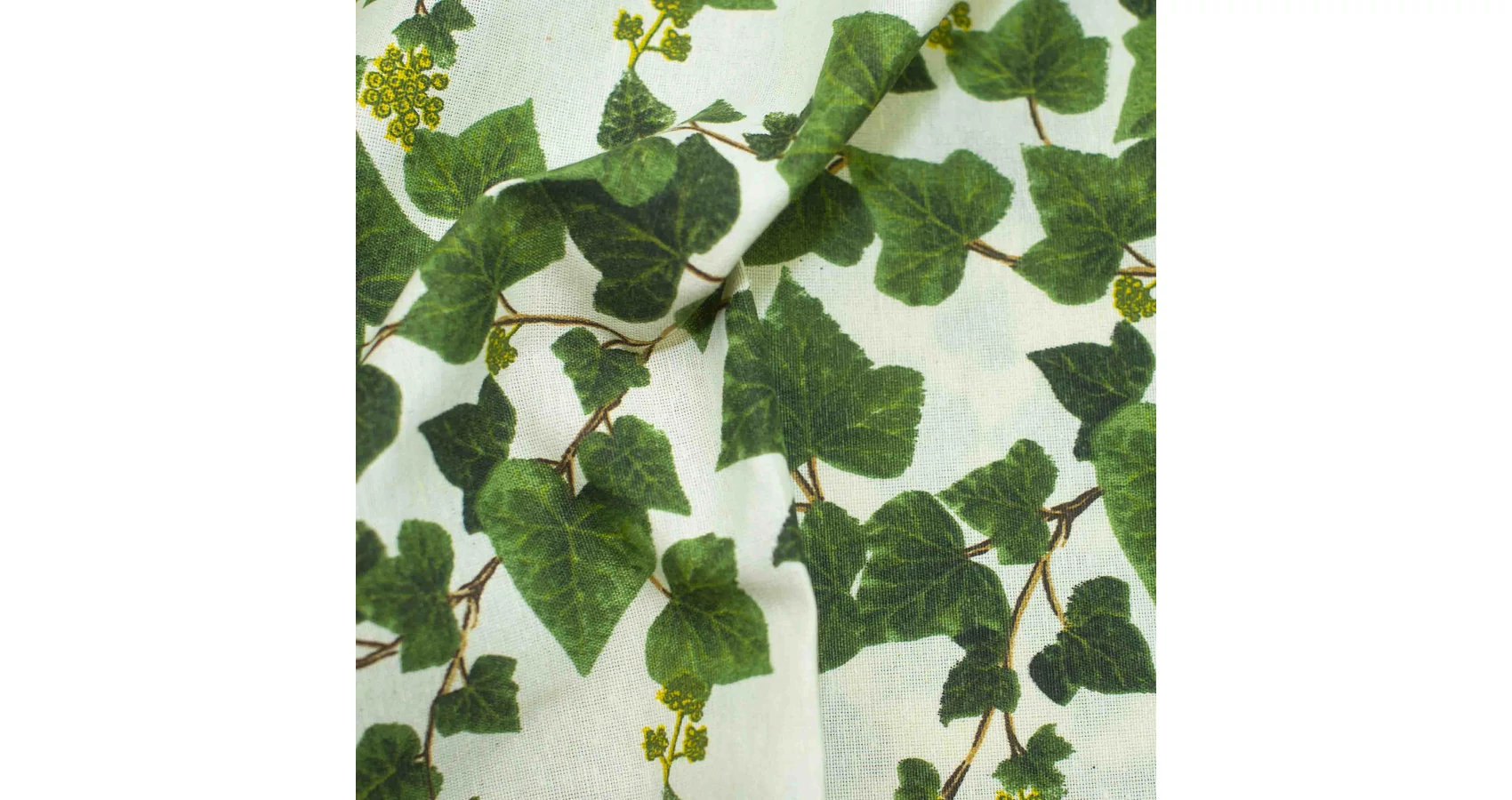 Dekorvászon méteráru borostyán leveles mintával. Erős, strapabíró textil, mely rendkívül sokoldalúan felhasználható, kreatív alapanyag. Szép struktúrájú, rusztikus megjelenésű textil. Természetes alapanyaga révén zsugorodásra hajlamos.
