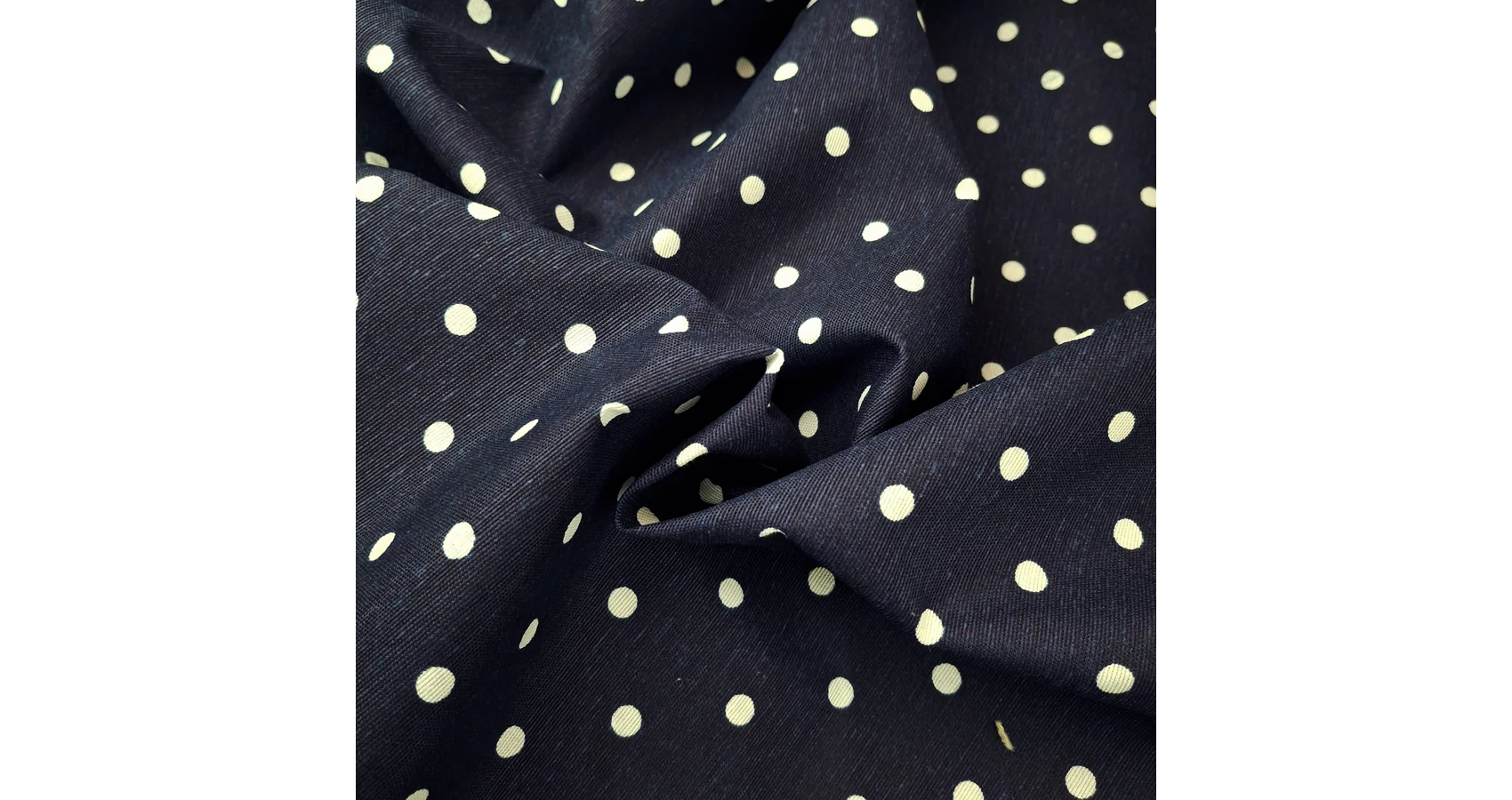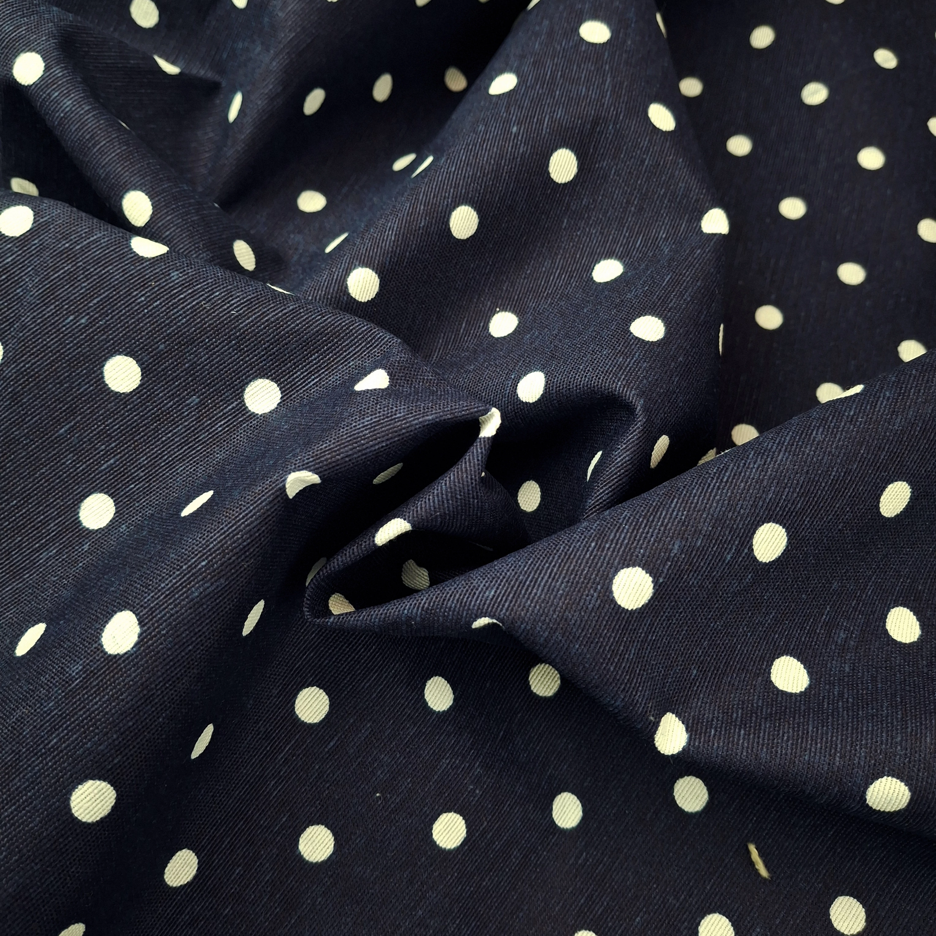 Dekorvászon – Sötétkék alapon pöttyös mintával, LONETA, extra széles