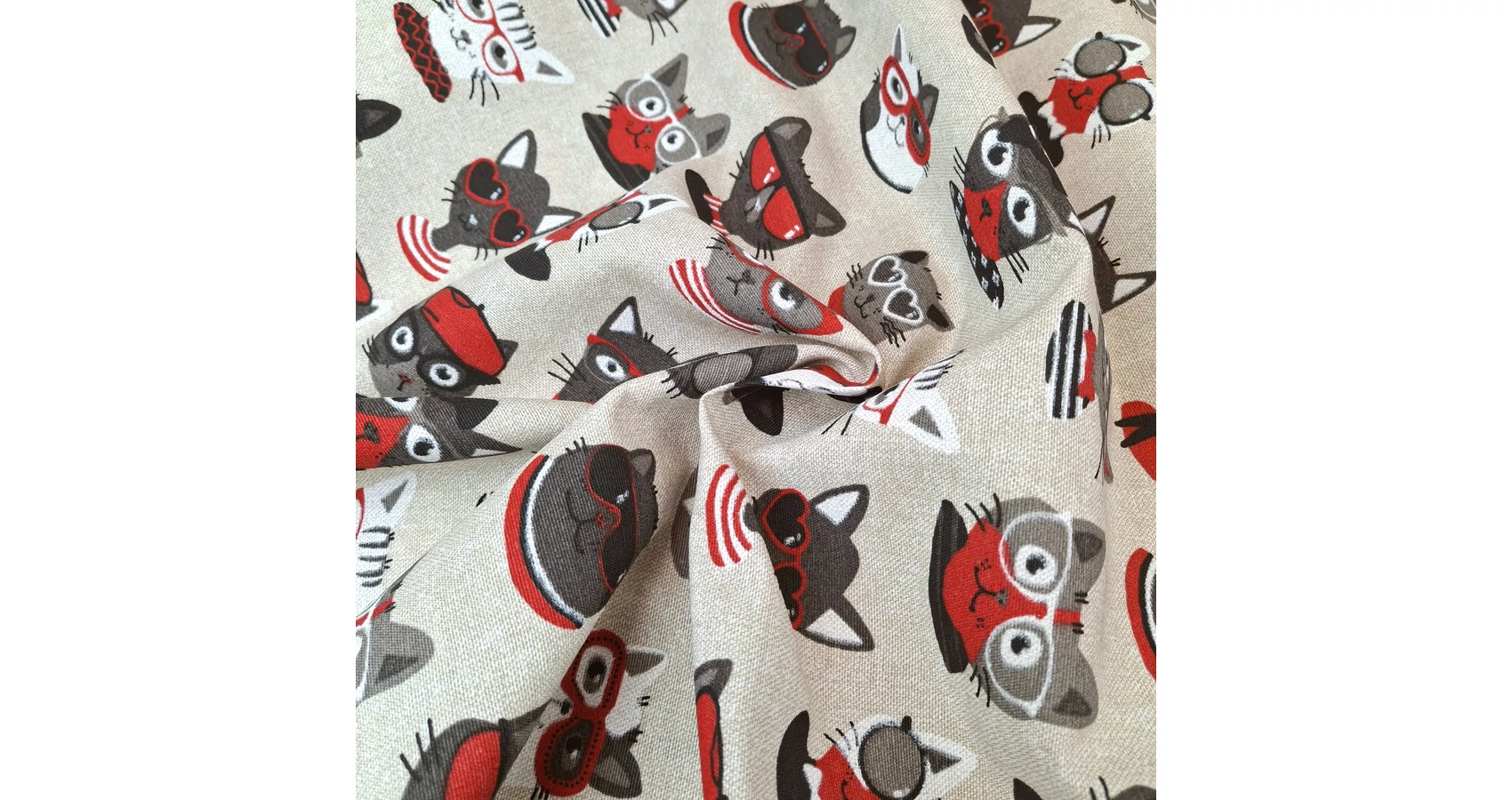 Dekorvászon – Szemüveges cicás mintával, LONETA, extra széles