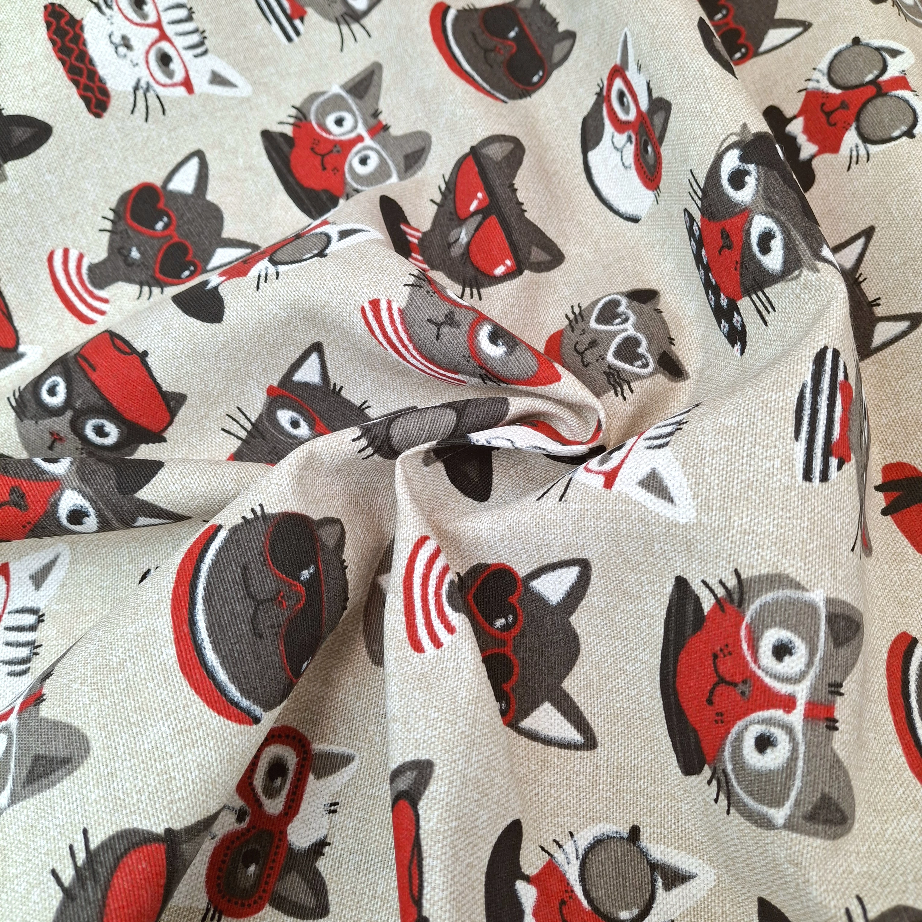 LONETA Dekorvászon méteráru szemüveges cicás mintával. Extra széles, erős, strapabíró textil, rendkívül sokoldalúan felhasználható, kreatív alapanyag.