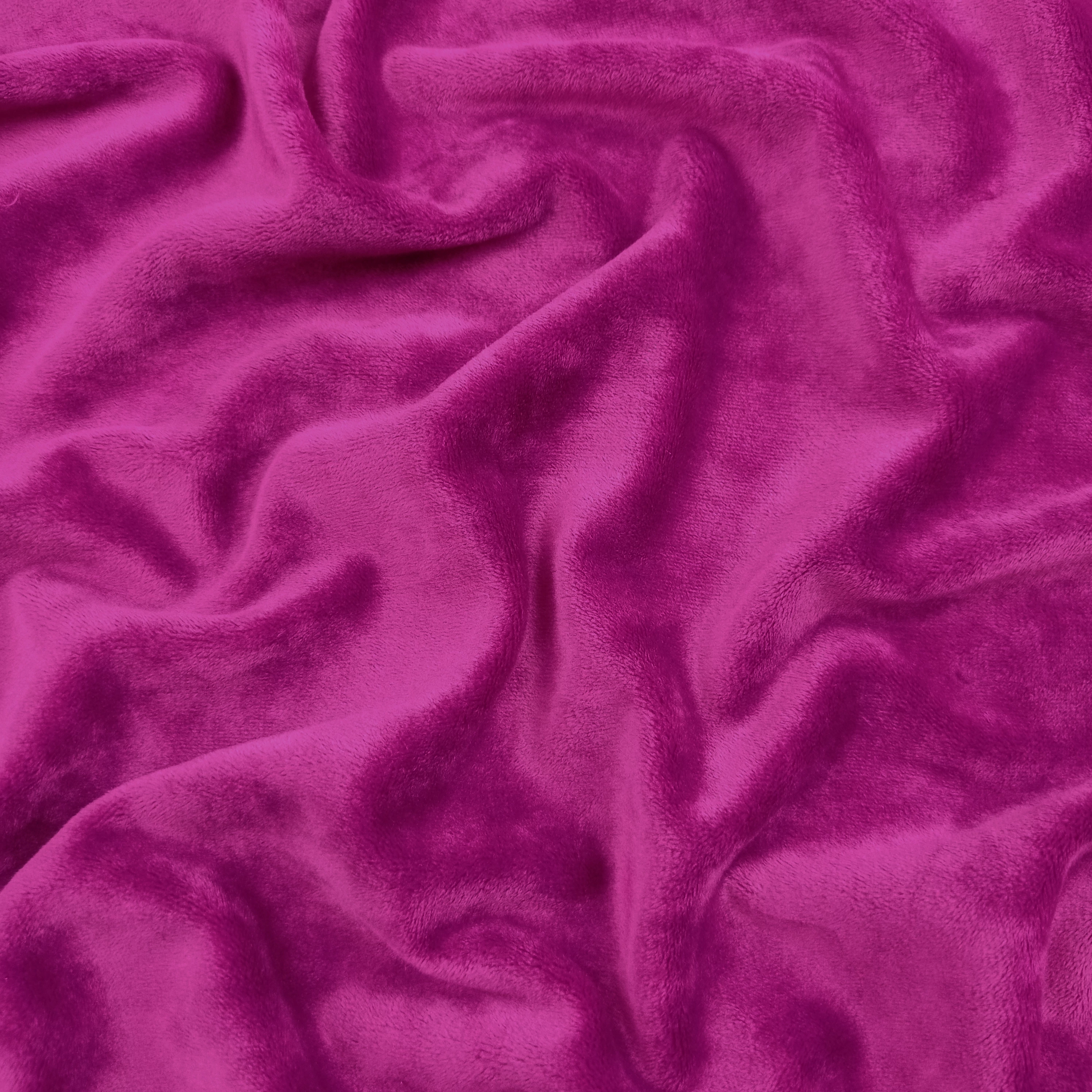 Elasztikus plüss méteráru ciklámen színben. Fényesen matt felületű, sűrű szövésű, mégis lány esésű rugalmas textil, melyen a gyűrődéseknél, ráncolásnál a bársonyhoz hasonlóan a fény szépen megtörik. Nagyon elegáns textil, előkelő megjelenést kölcsönöz viselőjének. Ahhoz hogy a plüss szálai sokáig megőrizzék eredeti szépségüket, a kézi mosást, gépi mosásnál pedig a kímélő, 30 fokos mosást ajánljuk.