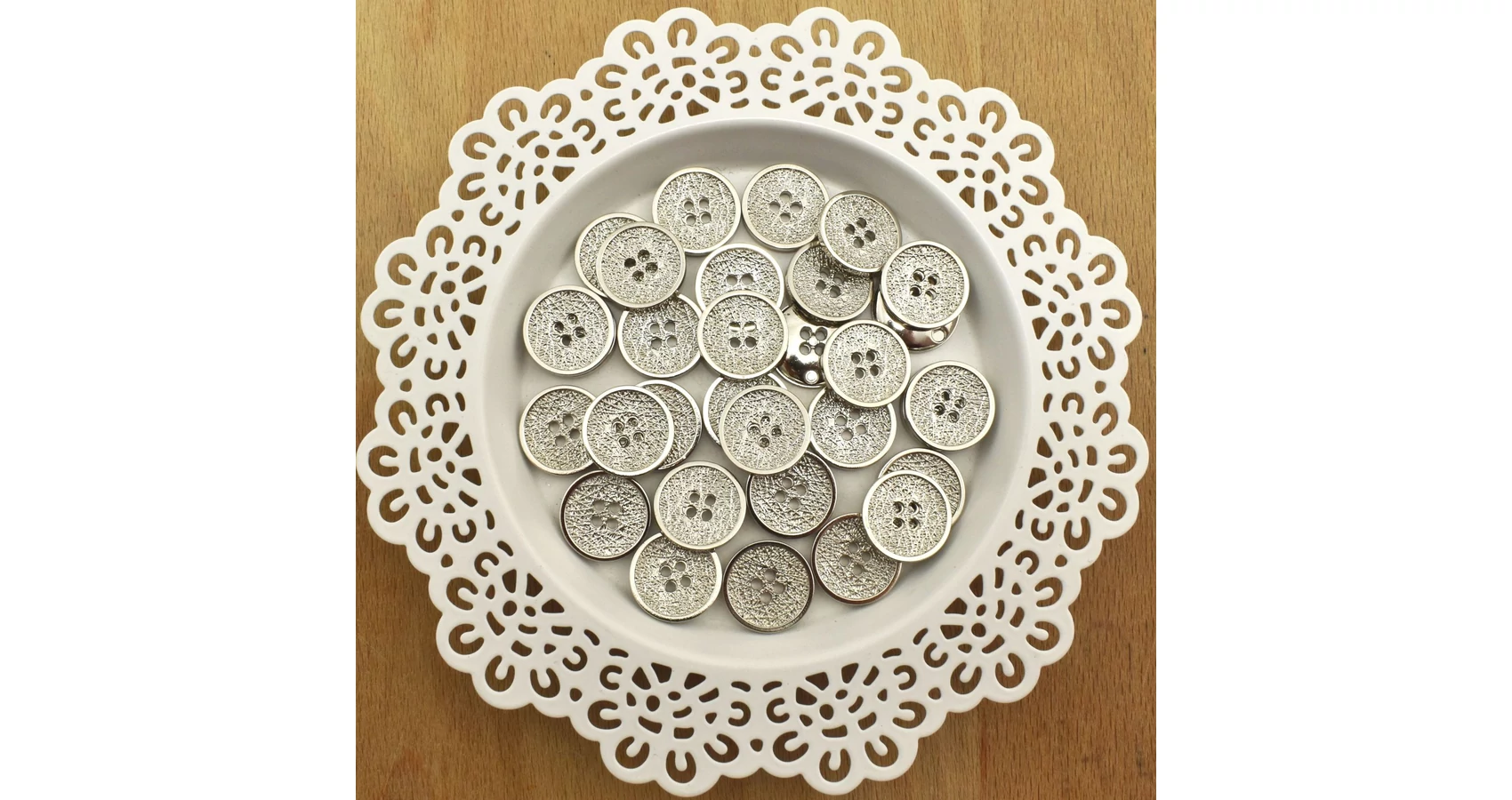 Fém gomb – Koptatott ezüst színben, PAOLA JOY, 20"