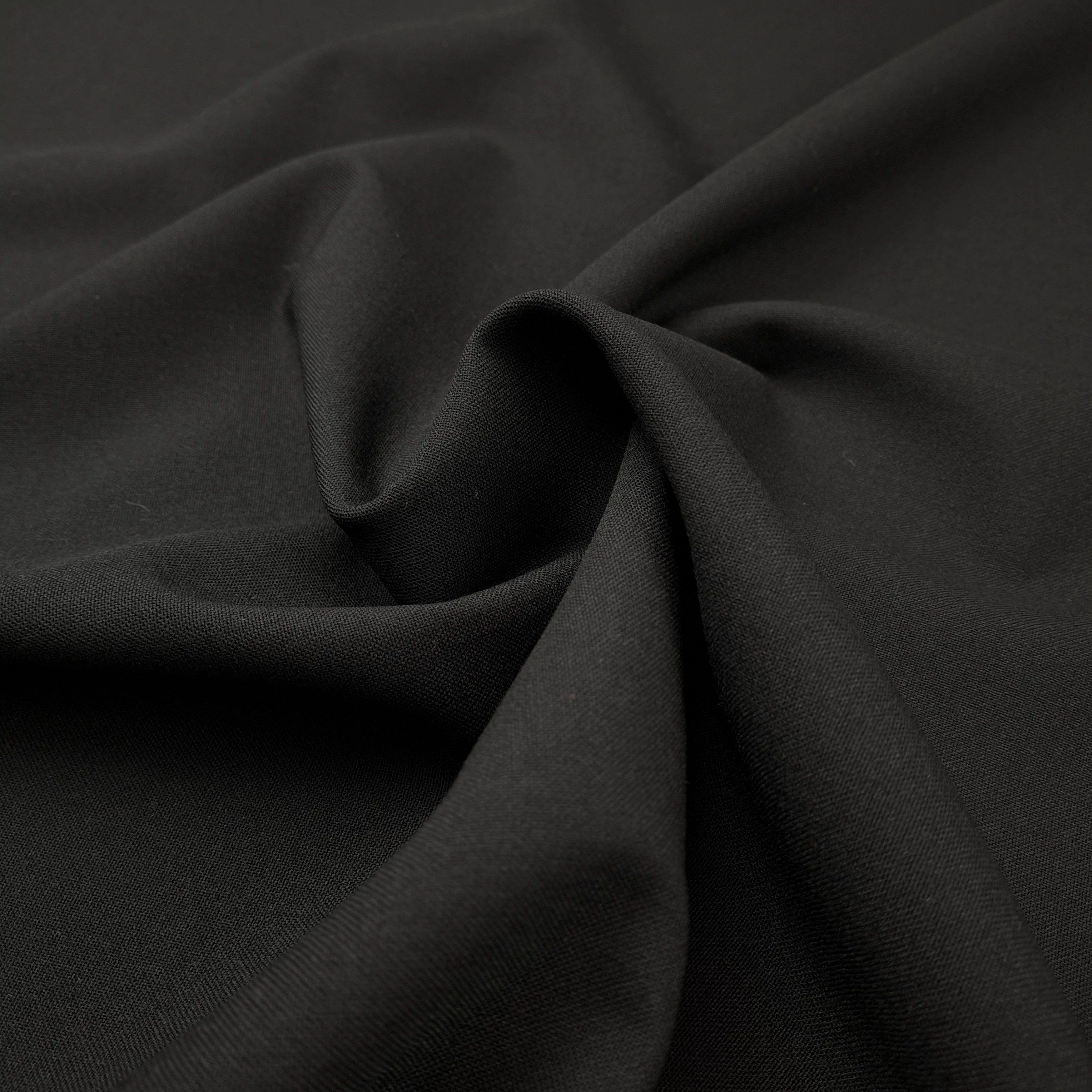 Kevert szálas gyapjú szövet méteráru fekete színben. Kellemes tapintású, szép esésű, strapabíró anyag. Közepes vastagságú, nem elasztikus szövet anyag, mely gyűrődésre nem hajlamos. Felhasználás előtt beavatandó.