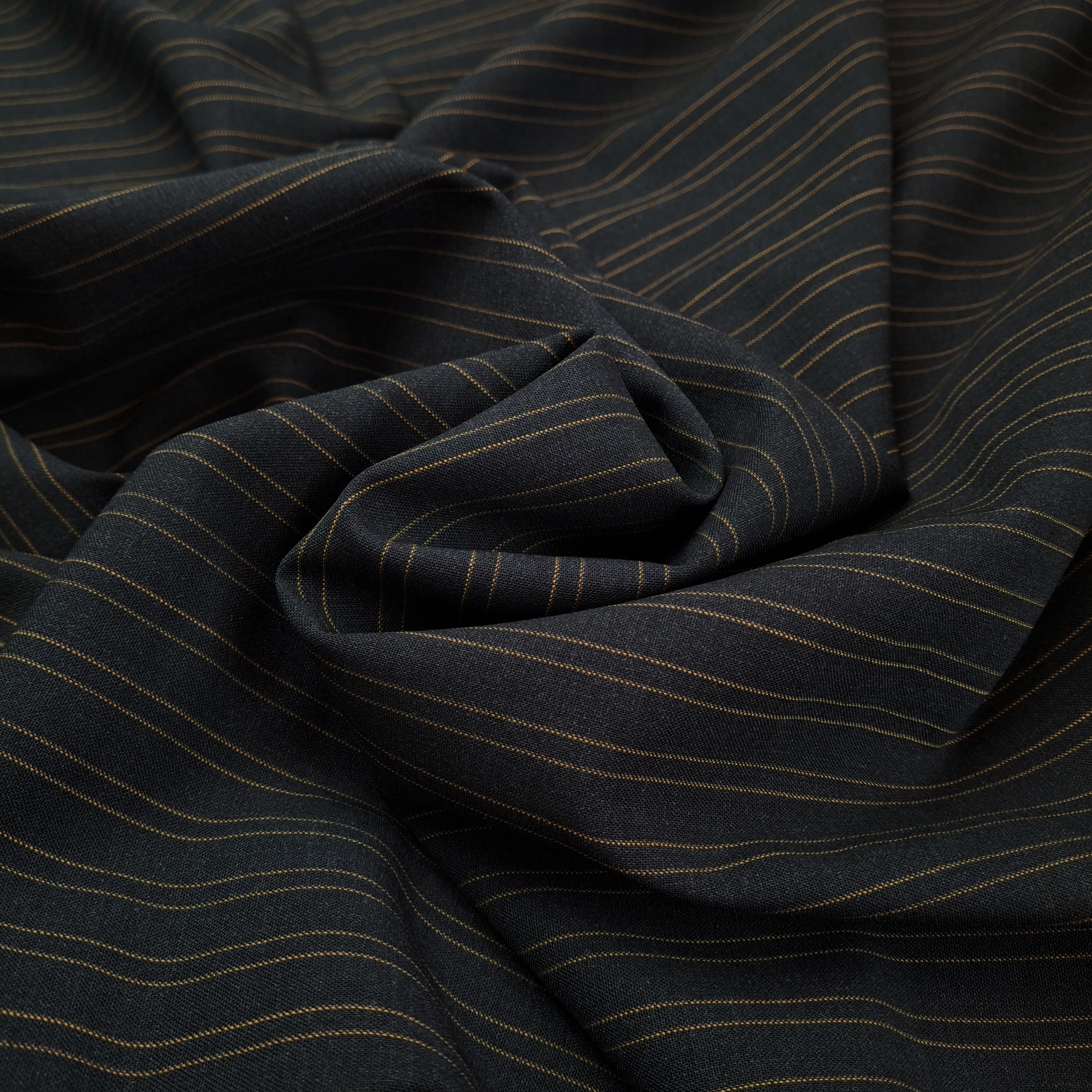 Gyapjú szövet - Sötétszürke színben, mustár színű csíkos mintával