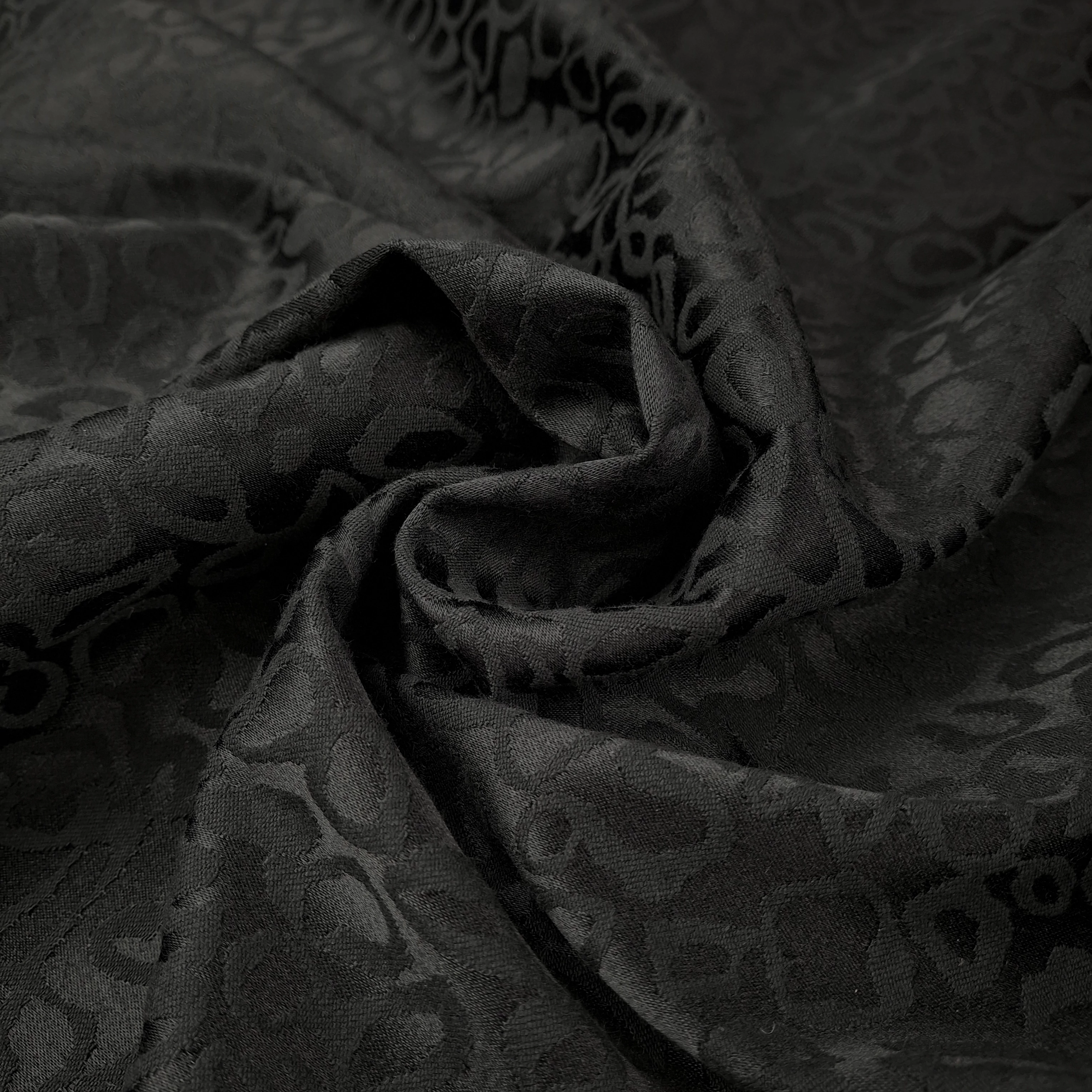Jacquard, elasztikus – Fekete színben, párduc mintával