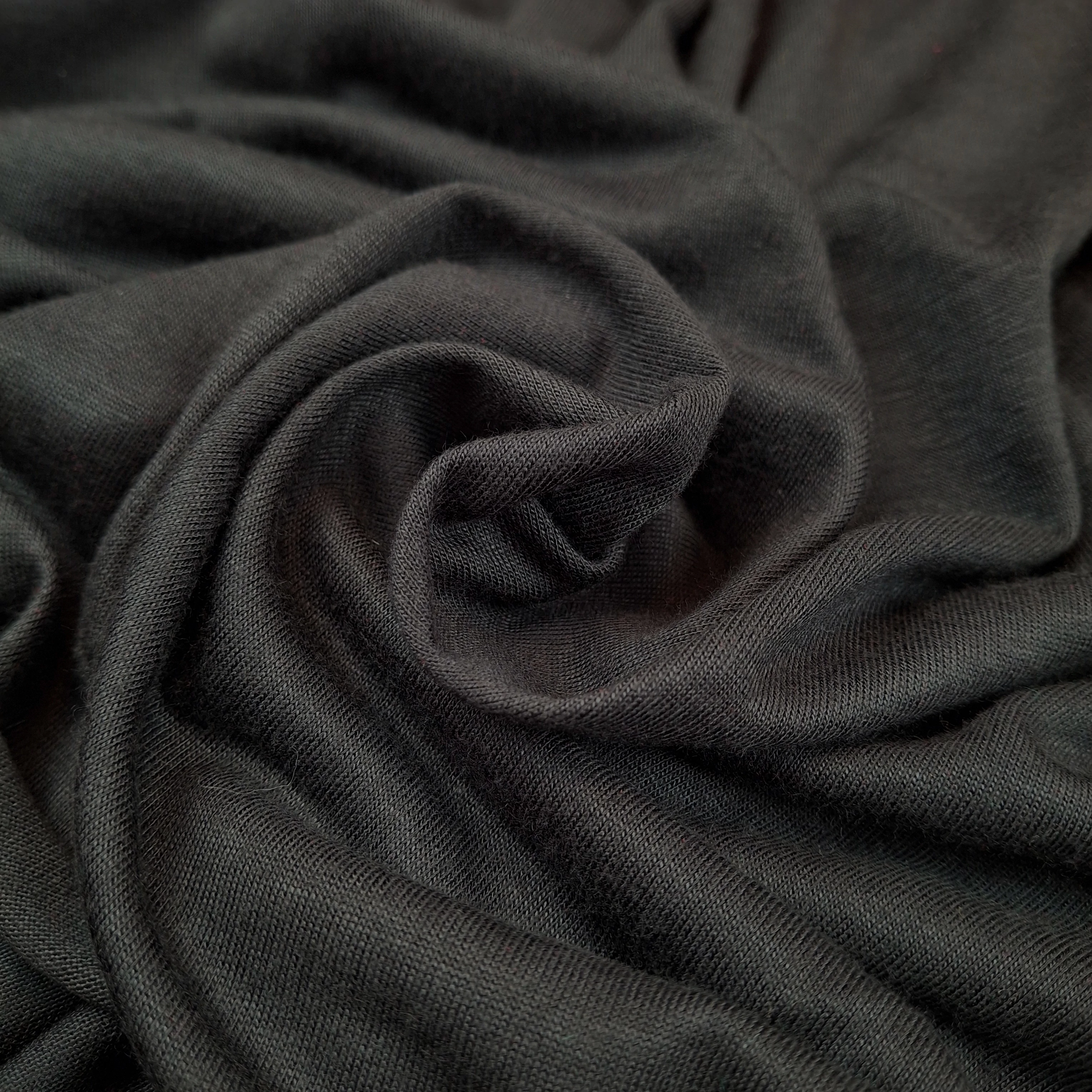 Jersey méteráru sötétszürke színben. Lágy tapintású, vékony, puha felületű, kiváló minőségű kelme. Szép esésű, mindkét irányban rugalmas anyag, mely szépen követi a test körvonalát, gyűrődésre nem hajlamos.