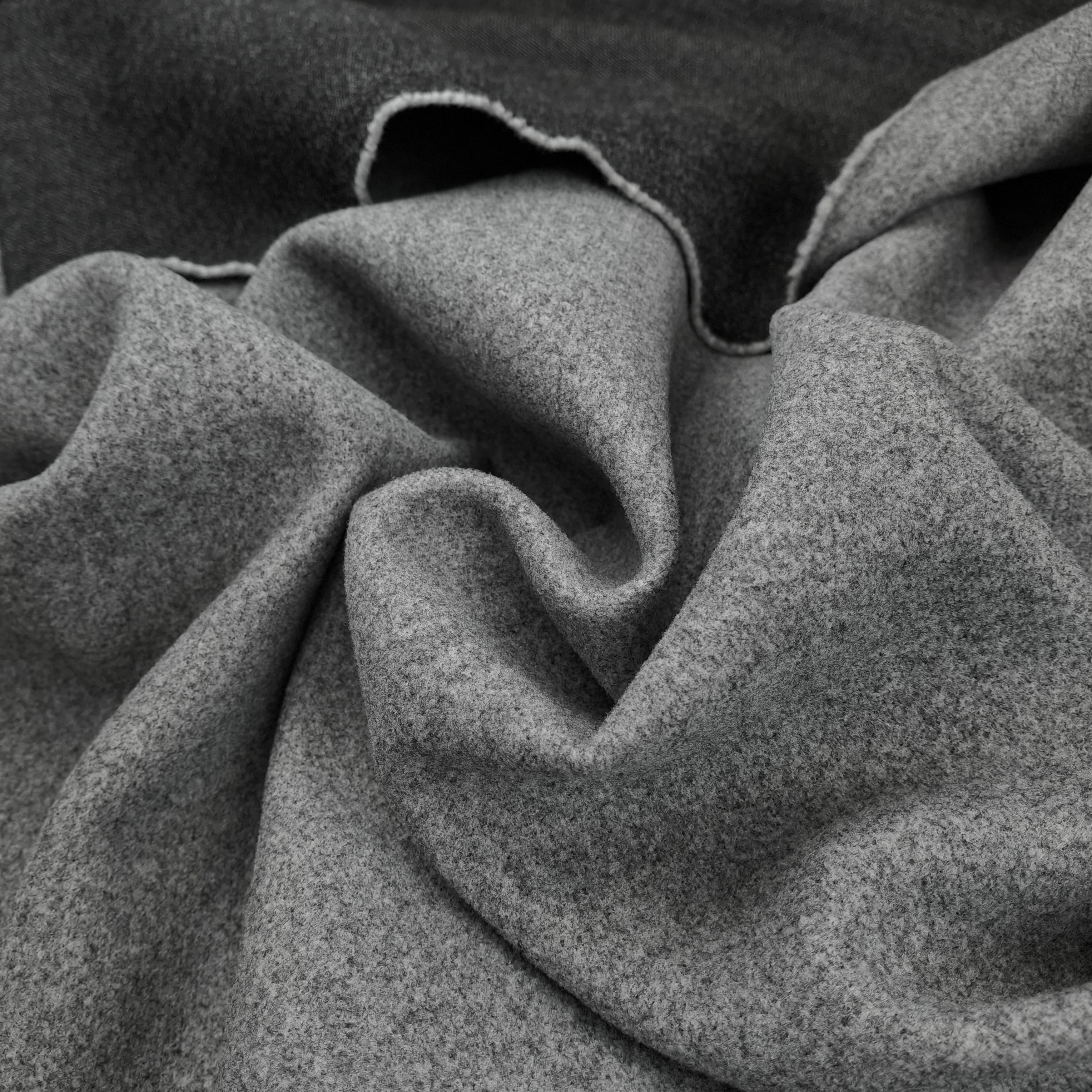 Kabátszövet méteráru anyagában kétoldalas kivitelben, szürke és sötétszürke színben. Mindkét oldala puha, kissé bolyhos felülettel rendelkezik. Kellemes tapintású, némi tartással rendelkező, dús, minőségi, vastag téli kelme.