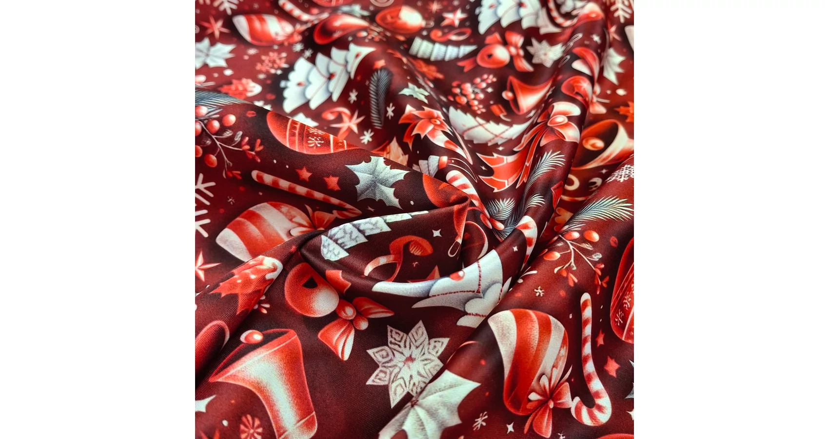 Szatén méteráru karácsonyi mintával. Tartással rendelkező, hamvas fényű mintás műszálszatén. Felülete sima, szatén fényű. Karácsonyfa talp takarók, különféle ünnepi dekorációk és hangulatos ruházati termékek készítéséhez. Mosása alacsony 30°C fokon ajánlott, felhasználás előtt érdemes beavatni.