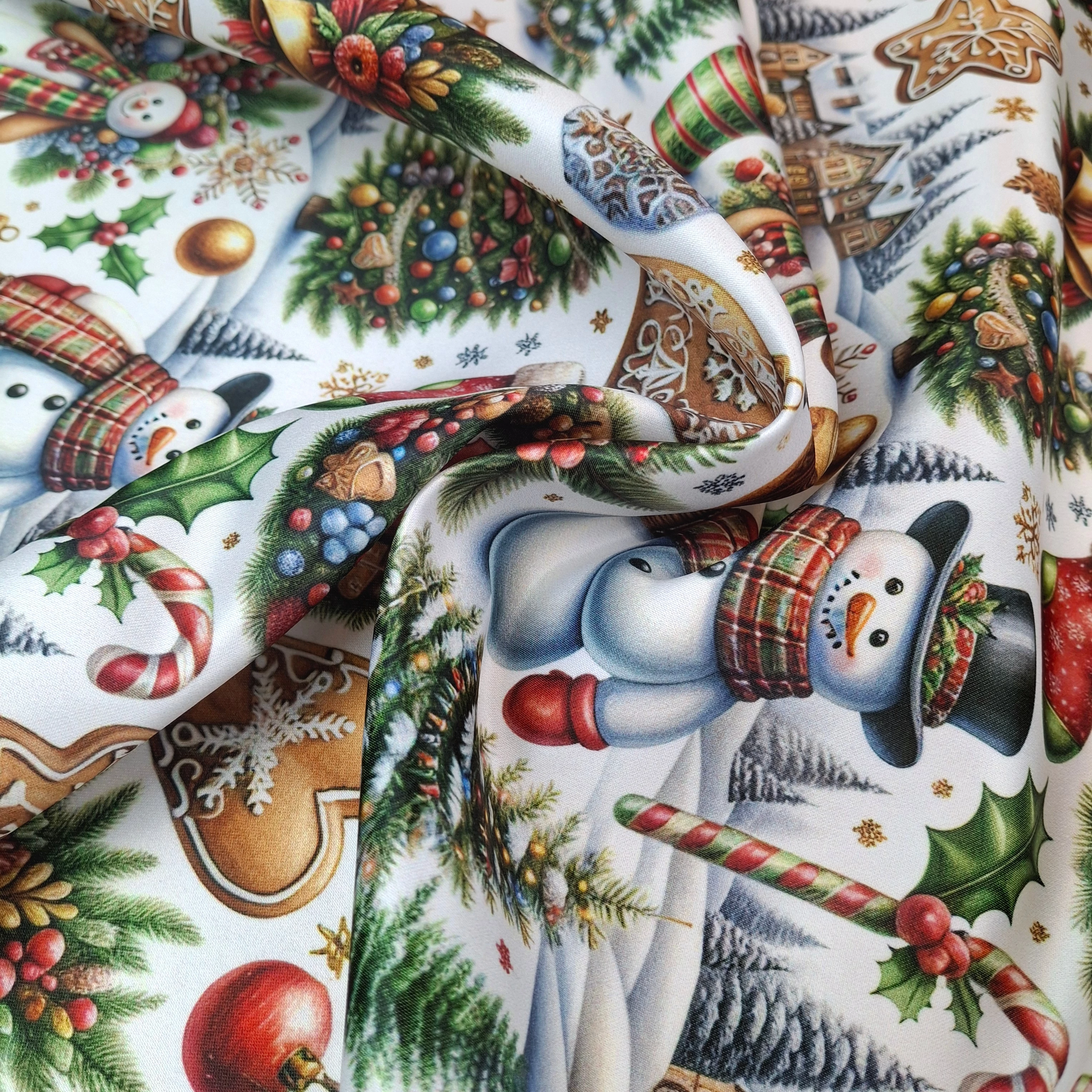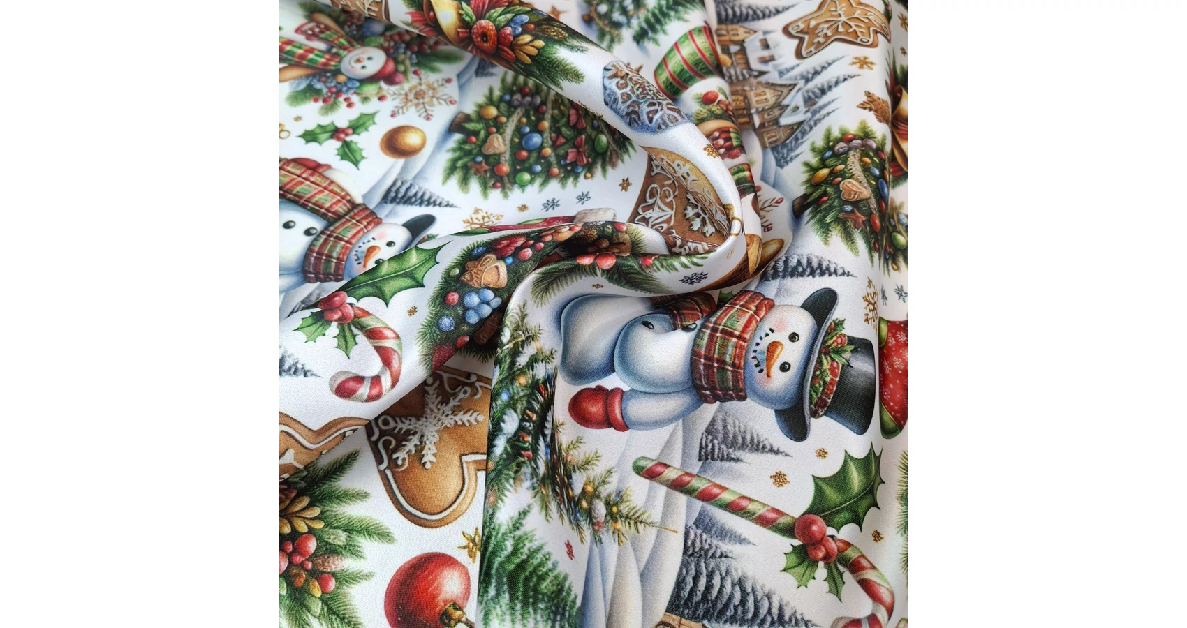 Karácsonyi szatén – Mézeskalács és hóember mintával (18)