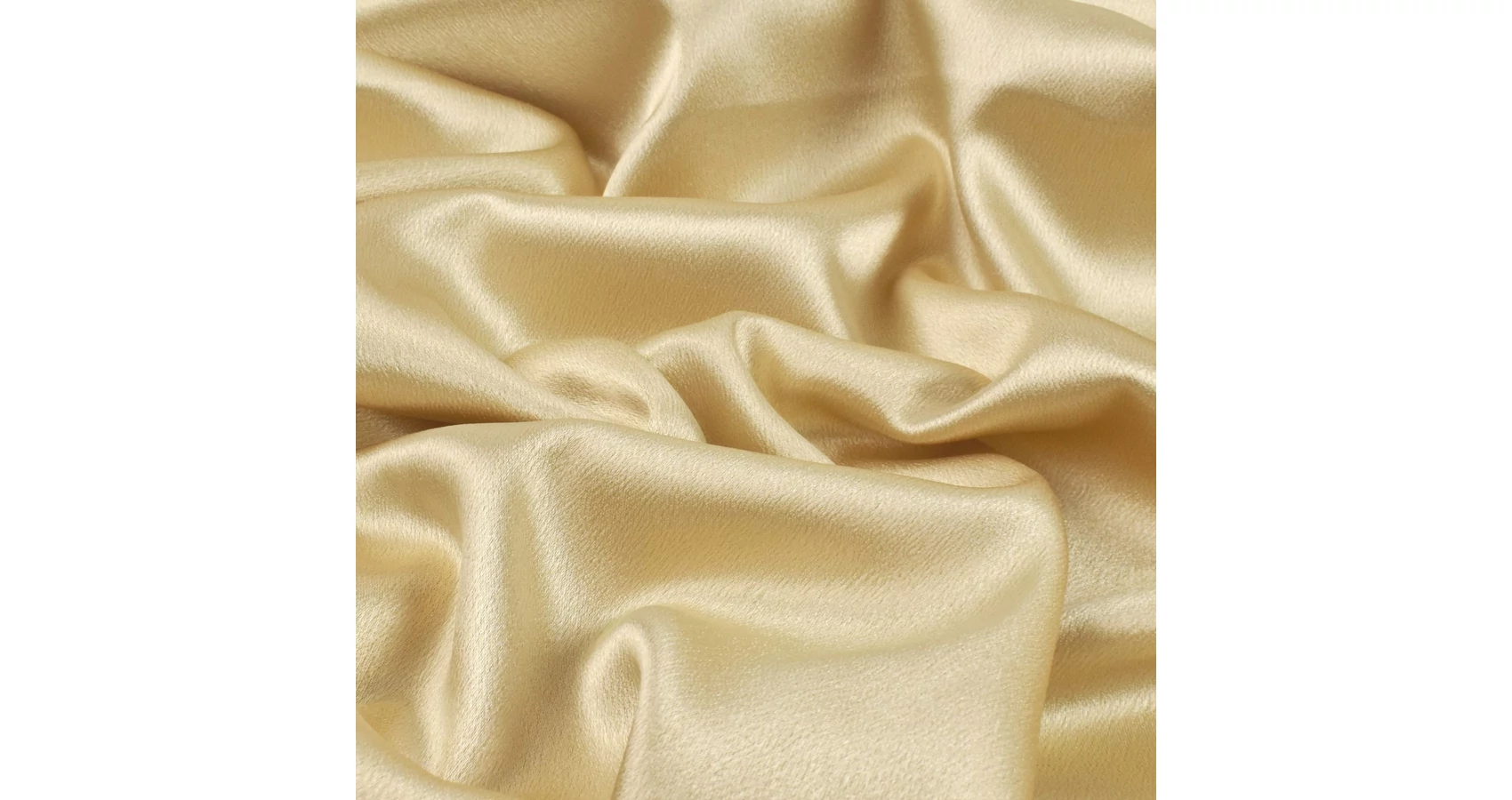 Szatén selyem méteráru vajszínben. Szemcsés fényű, kereszt irányban rugalmas, szép esésű, csúszós tapintású alkalmi anyag. Mosását közepes hőfokon ajánljuk, felhasználás előtt beavatandó.