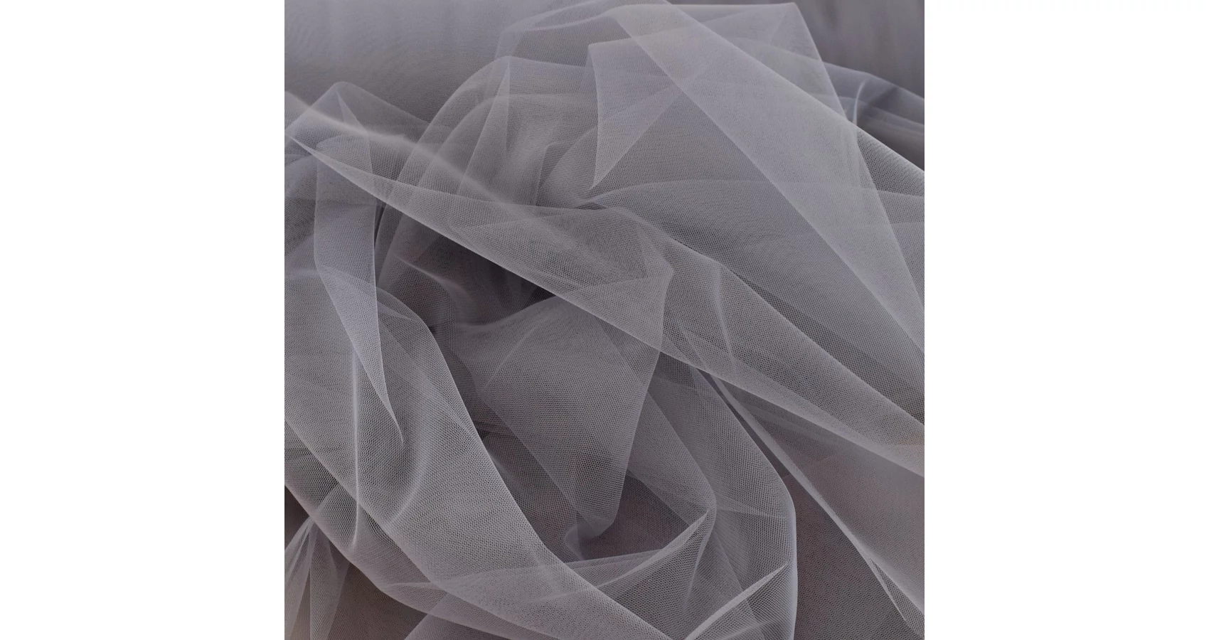 Extra széles tüll méteráru közép szürke színben. Elasztikus, szép esésű, puha tapintású lágy tüll anyag, elsősorban ruházati célú felhasználásra. Számottevő zsugorodással nem kell számolni, így nem szükséges felhasználás előtt beavatni.