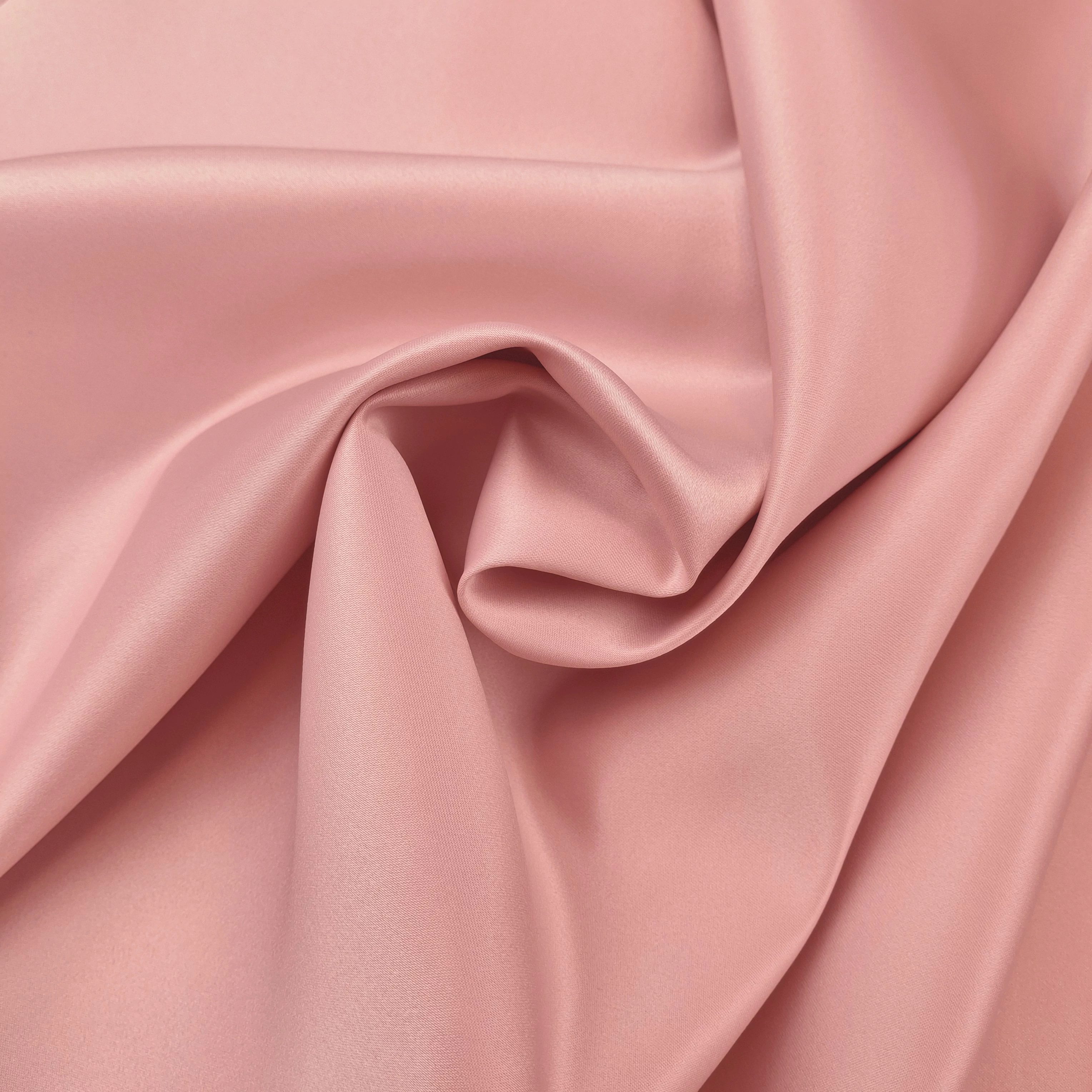 Menyasszonyi szatén méteráru mályvás rózsaszín színben. Rendkívül dús, nem elasztikus, elegáns megjelenésű, közepesen vastag, sima felületű, hamvas fényű alkalmi textil. Esése kellemesen lágy, mégis némi tartással rendelkező anyag. Menyasszonyi és alkalmi ruházatok tökéletes alapanyaga.