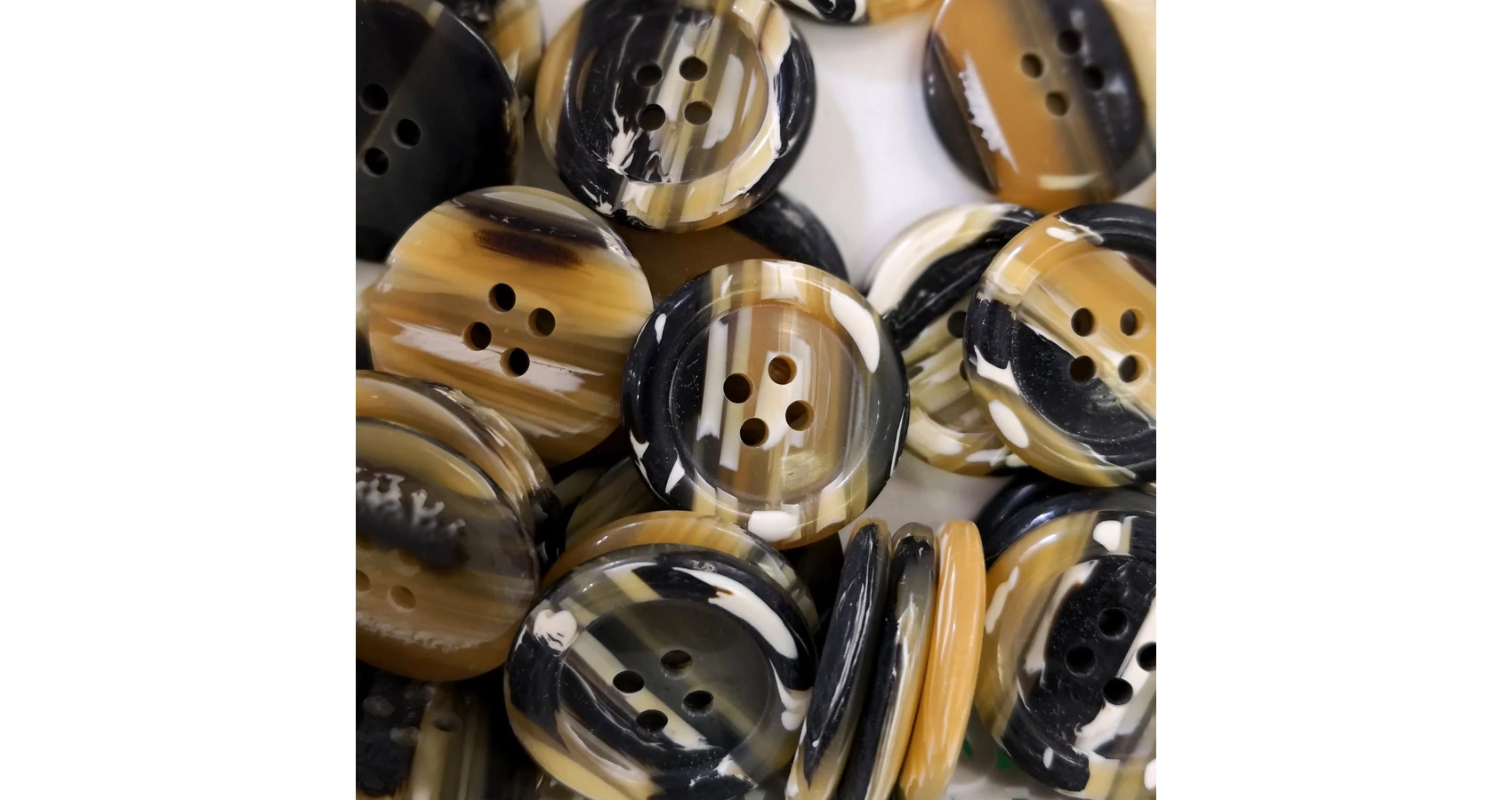 Műanyag gomb – Kabátgomb szürke cirmos színben, négylyukú, 25mm