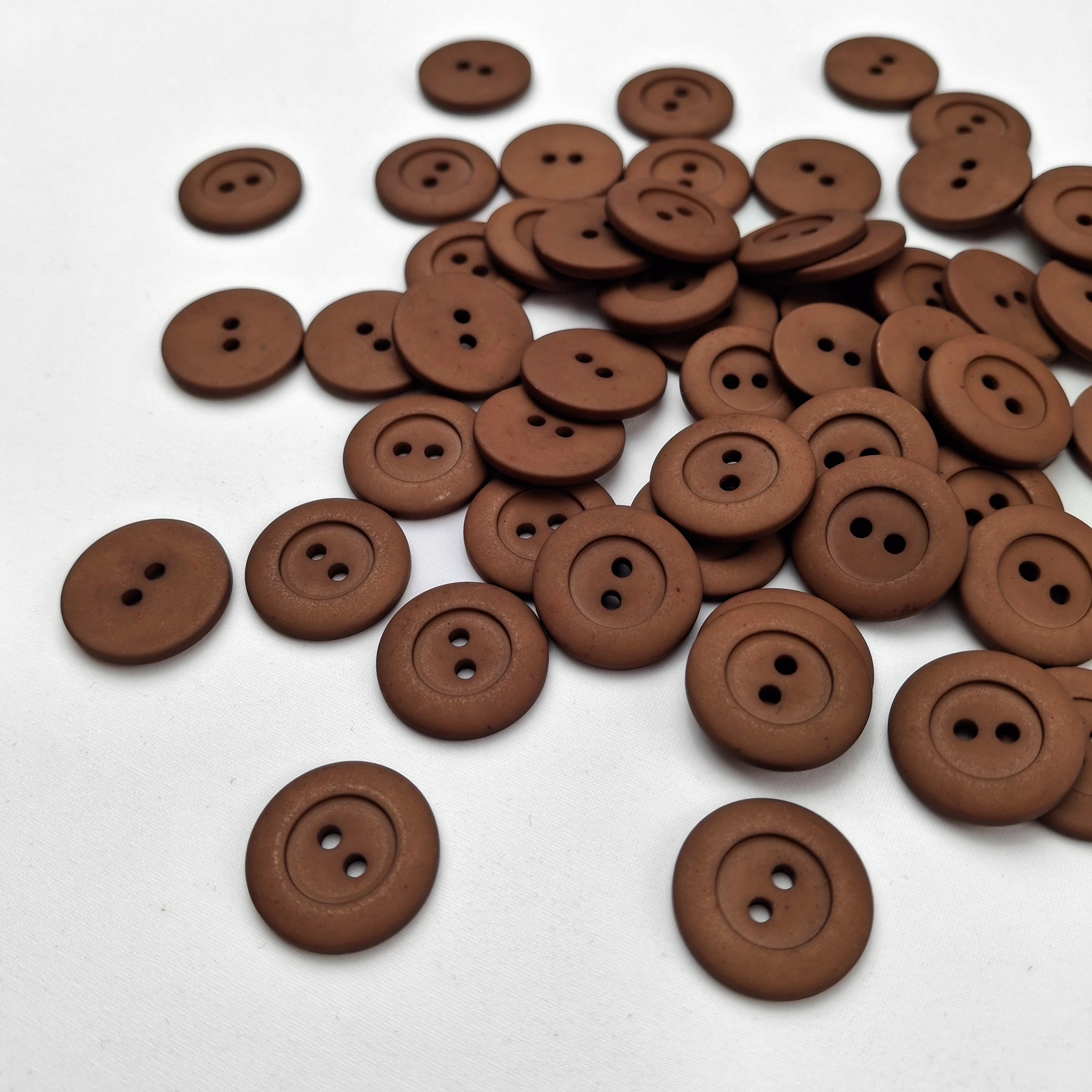 Műanyag gomb – Kabátgomb, koptatott barna, kétlyukú, 28mm