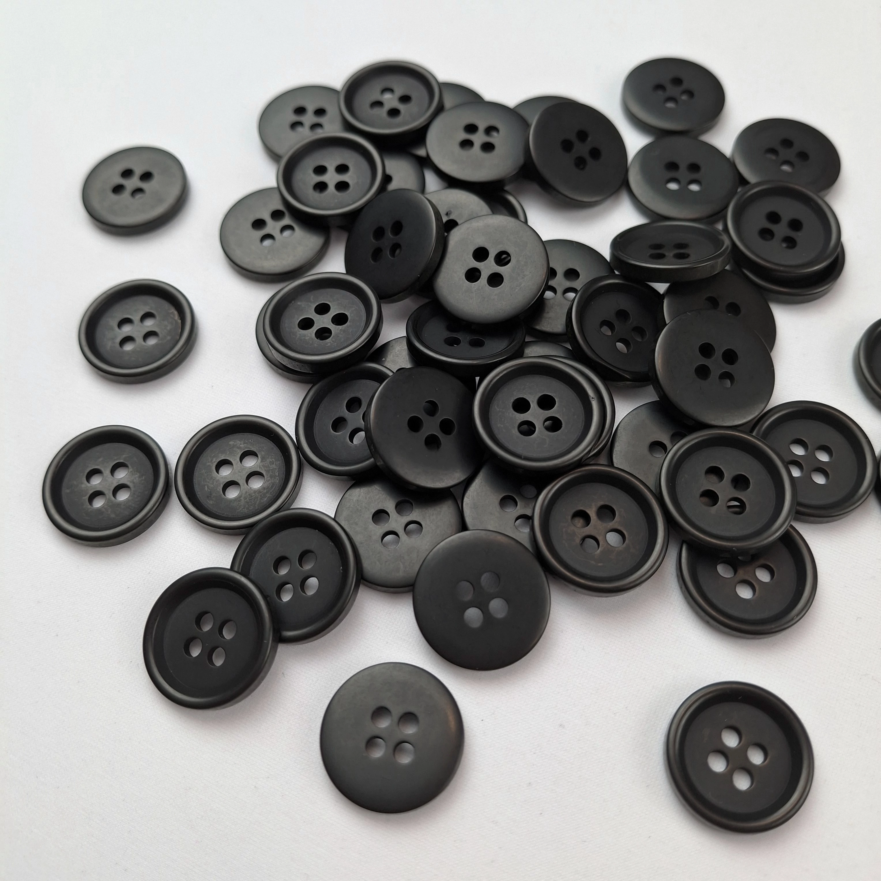 Műanyag gomb, öltönygomb, MISTER – Fekete színben, négylyukú, 24" (10)