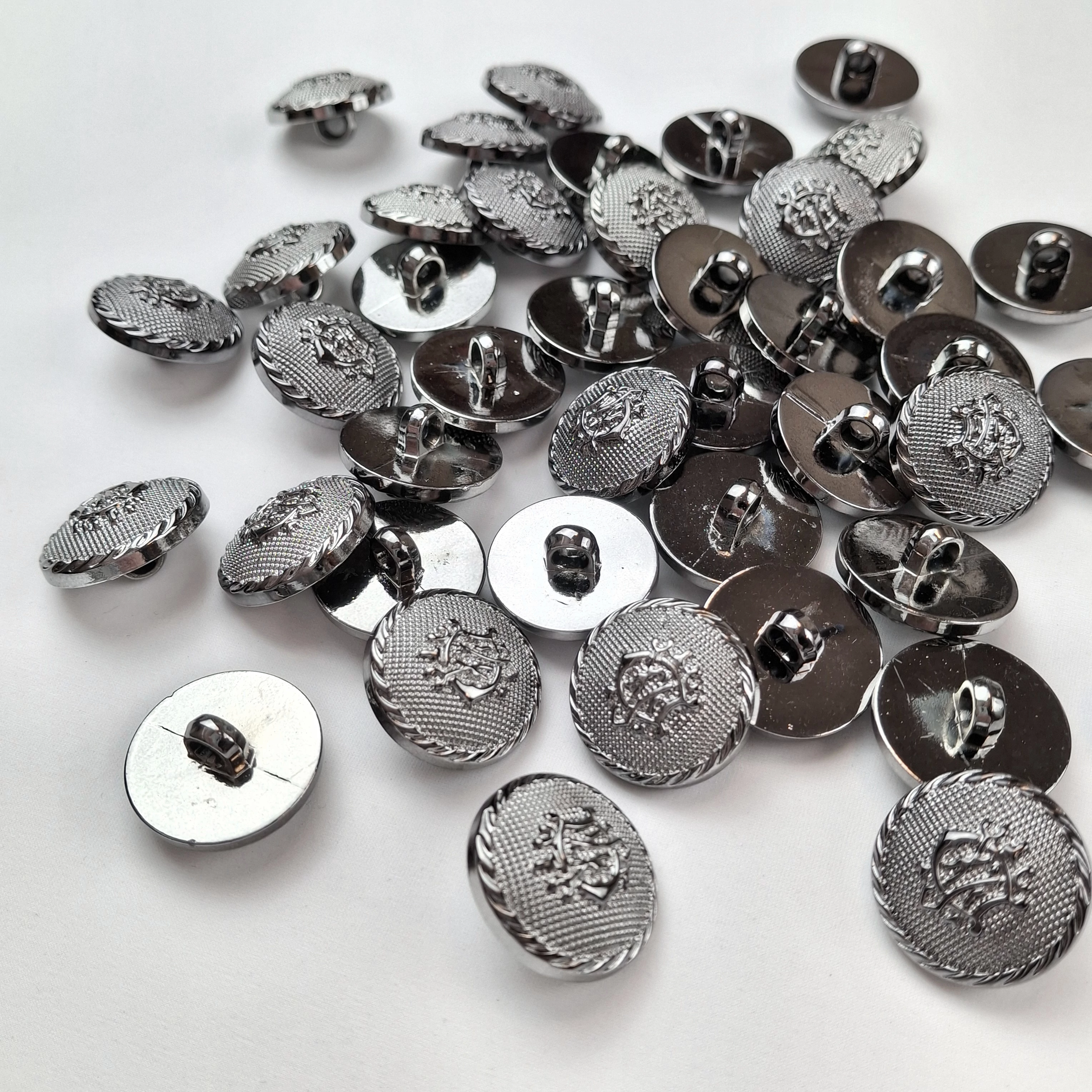 Műanyag gomb, SILVER – Ékszergomb/címeres gomb ezüst színben, 34" (8105)