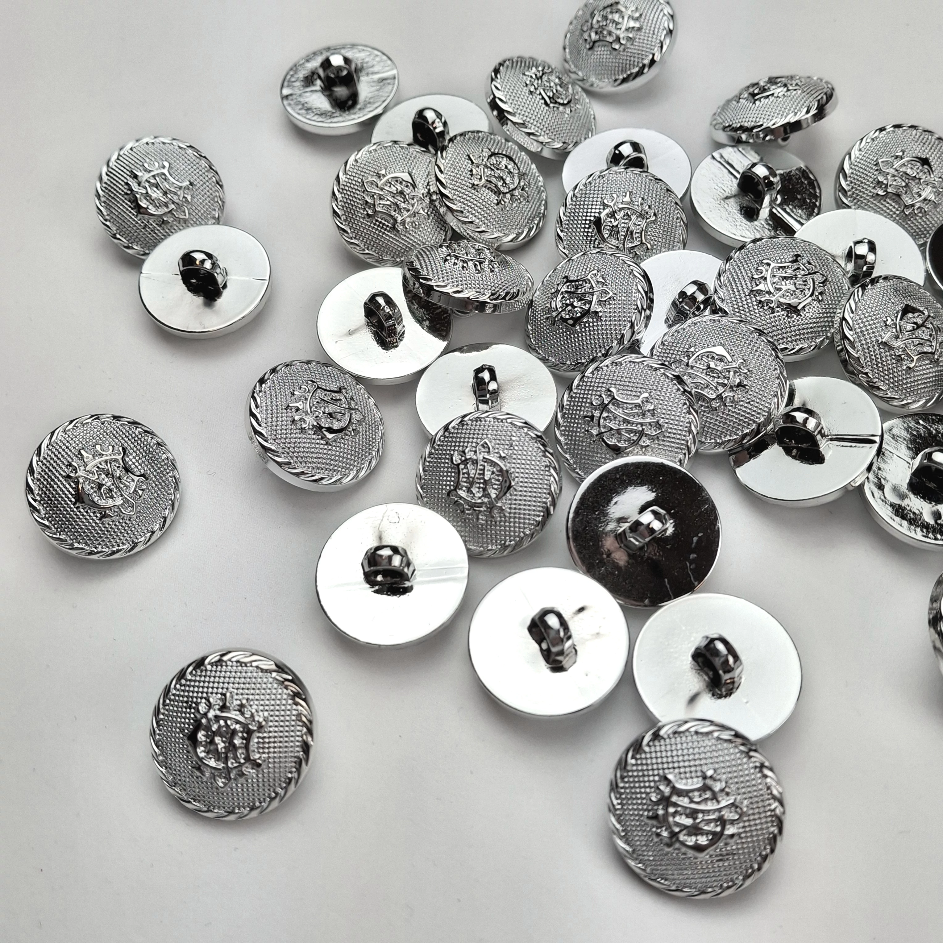Műanyag gomb, SILVER – Ékszergomb/címeres gomb ezüst színben, 28" (8105)