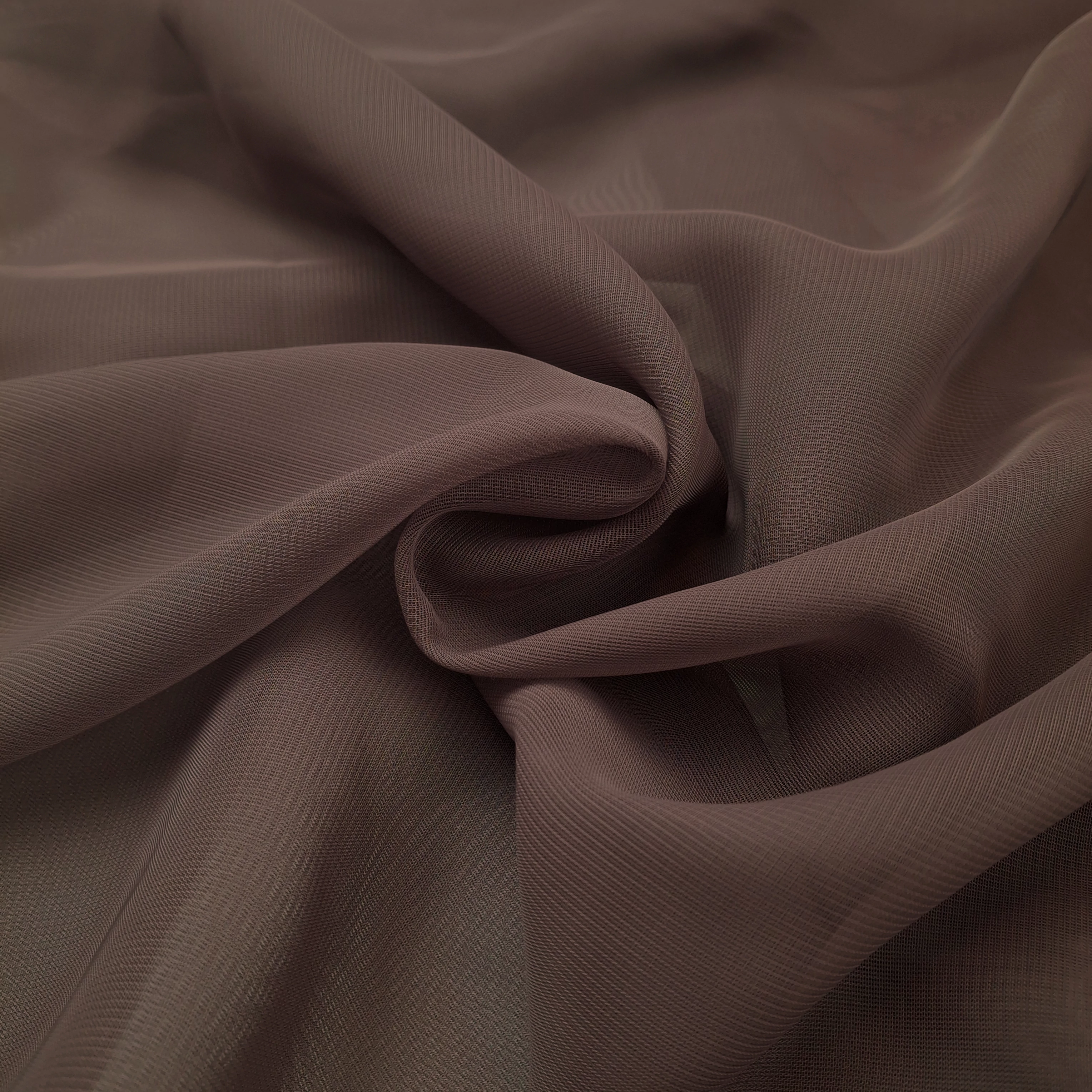 Muszlin méteráru taupe/tób színben. Nem elasztikus, áttetsző, lehelet vékony anyag. Finom esésű, lágy textil, mely gyönyörűen libben. Gyűrődésre nem hajlamos, szín és formatartó, elegáns női anyag. Inkább varrásban gyakorlottaknak ajánljuk és vékony (70-es) tűvel érdemes varrni. Ha a tű az anyag szálát meghúzza, az kézzel szépen visszagúzogatható.