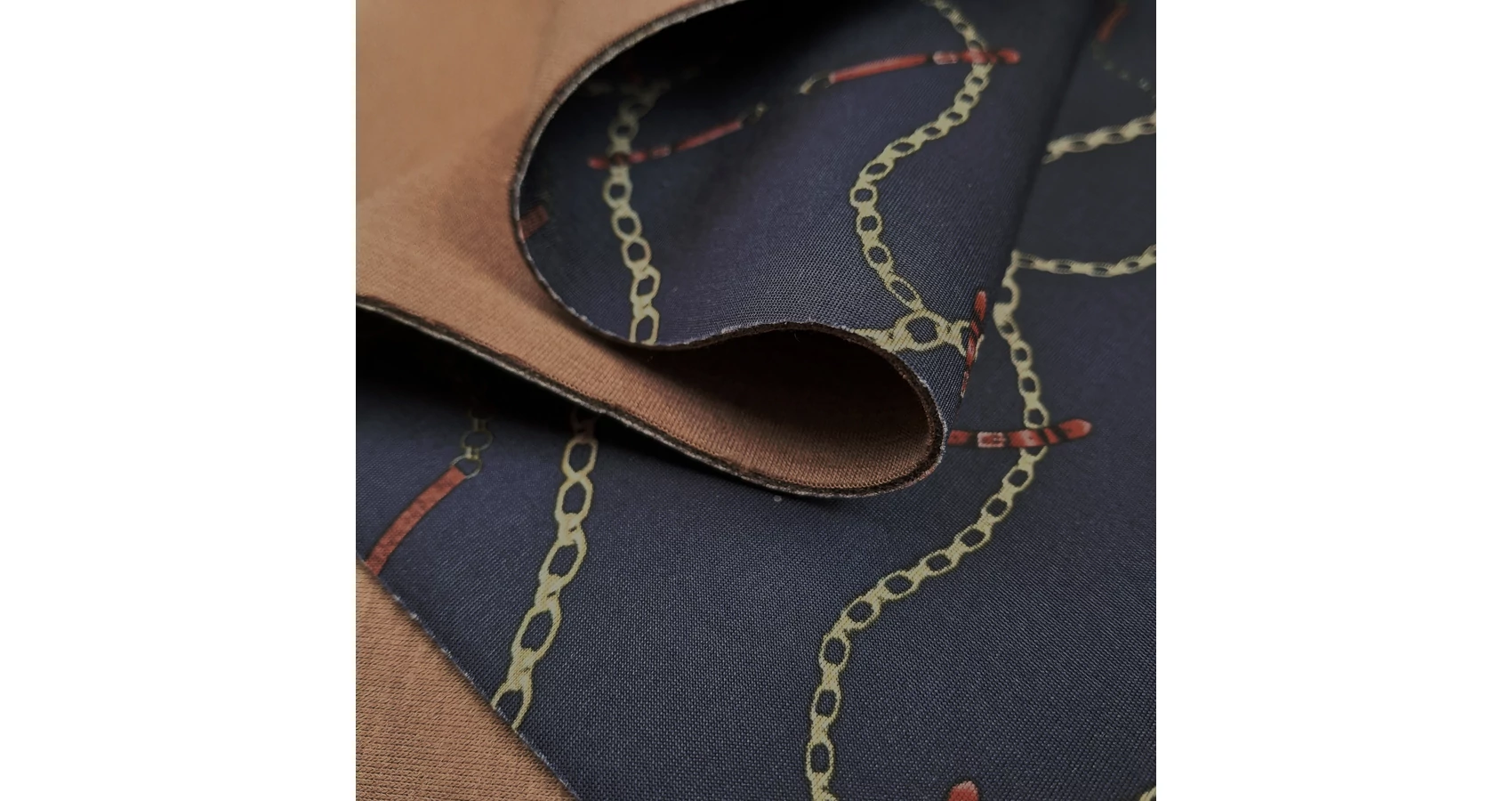 Neoprén - Sötétkék alapon láncos mintával/barna színben, kétoldalas, rugalmas, 1,8mm