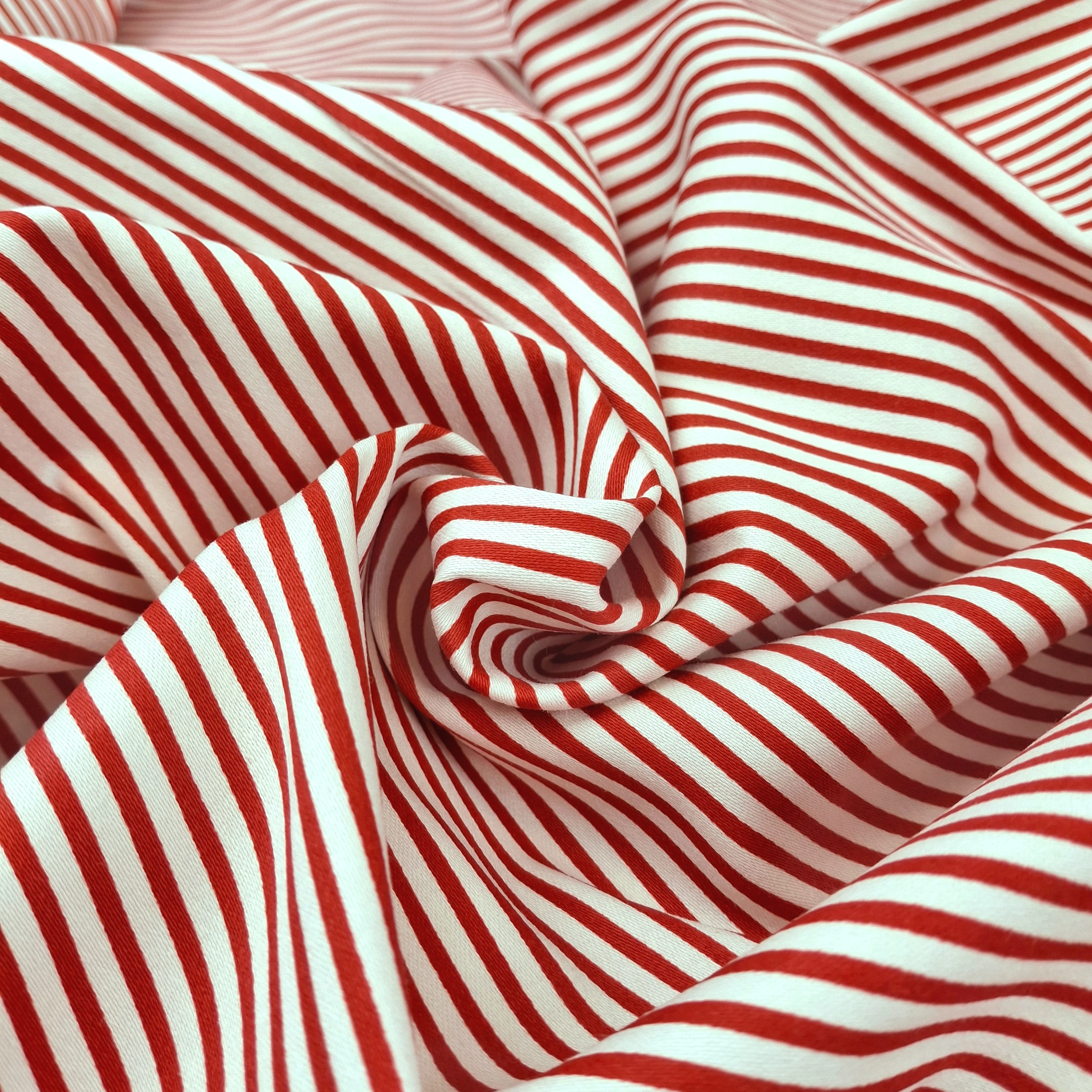 Pamut szatén, elasztikus - Piros-fehér csíkos mintával