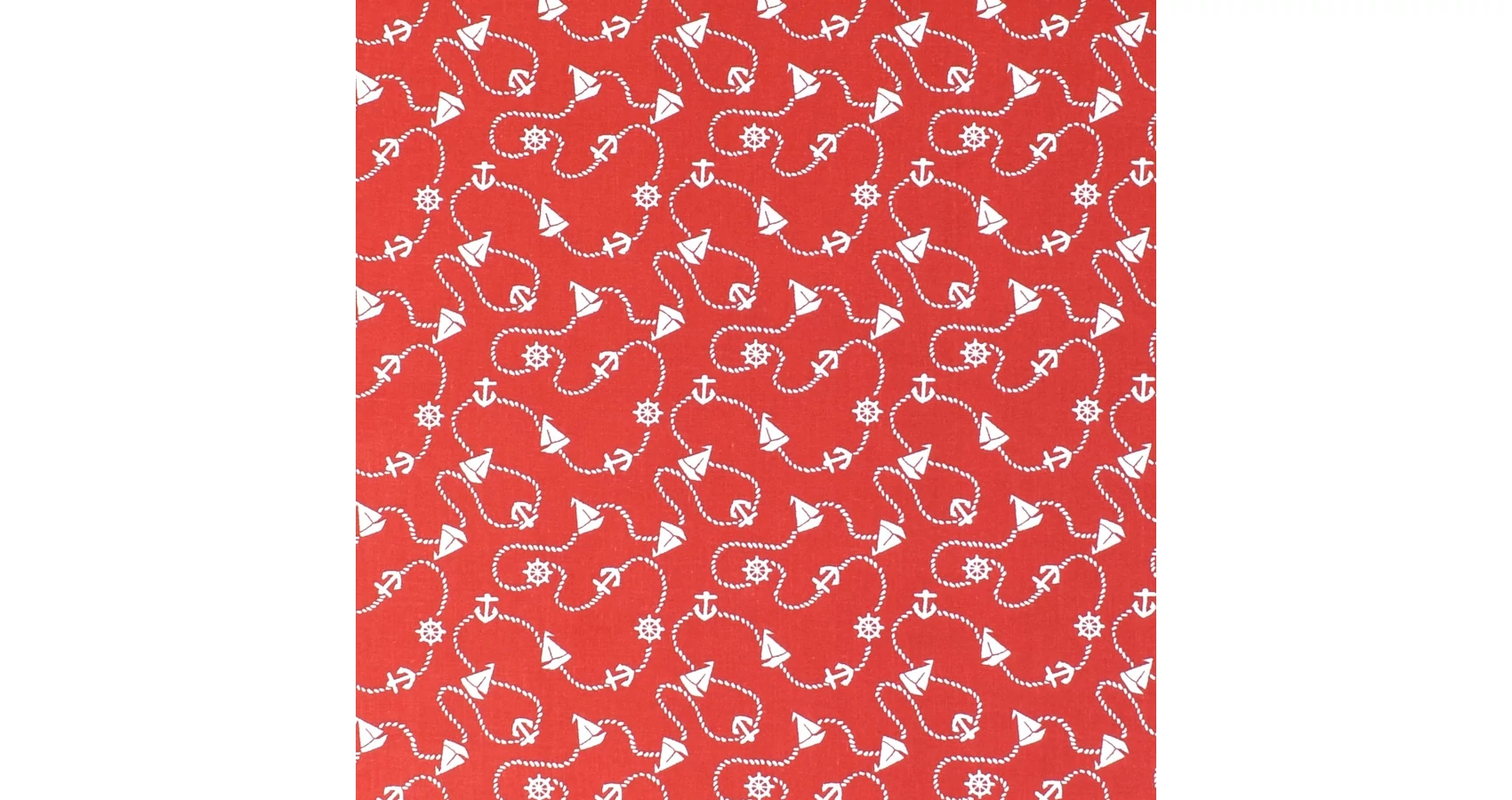 Pamutvászon méteráru piros alapon fehér tengerész mintával. Sokoldalúan felhasználható, közkedvelt természetes alapanyagú méteráru. Kiváló ruházati termékek, konyhai, illetve egyéb lakásdekorációs textíliák varrásához és számos kézműves termék is készül belőle. Természetes anyag révén felhasználás előtt érdemes beavatni, mivel a textil az első mosáskor 8-10%-ot zsugorodhat.