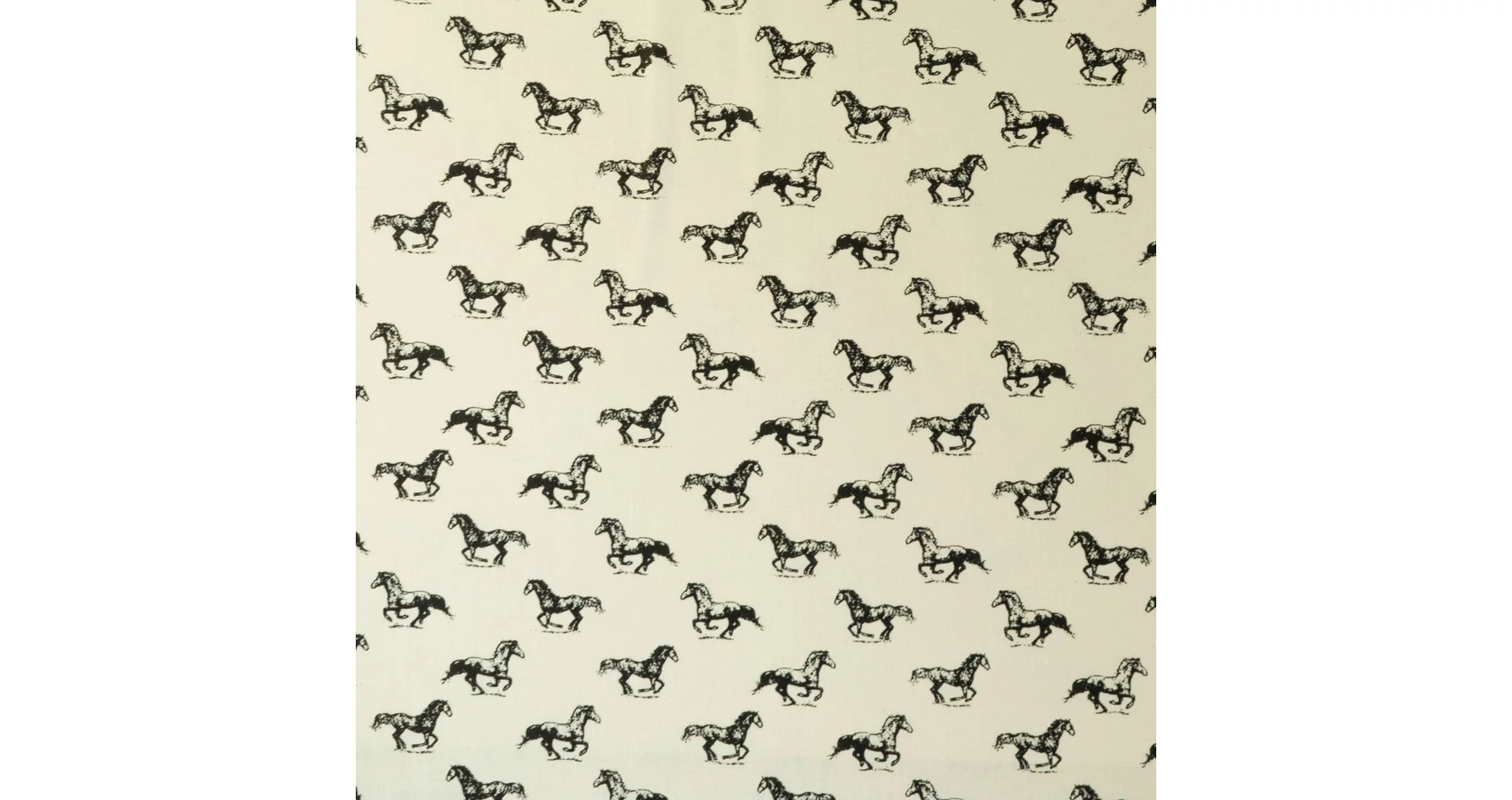 Pamutvászon méteráru vanília sárga alapon fekete lovas mintával. Kiváló alapanyag ruházati termékek, konyhai, illetve egyéb lakásdekorációs textíliák varrásához, de számos kézműves termék is készül belőle. Természetes anyag révén felhasználás előtt érdemes beavatni, mivel az anyag első mosása során 8-10%-os zsugorodással lehet számolni.