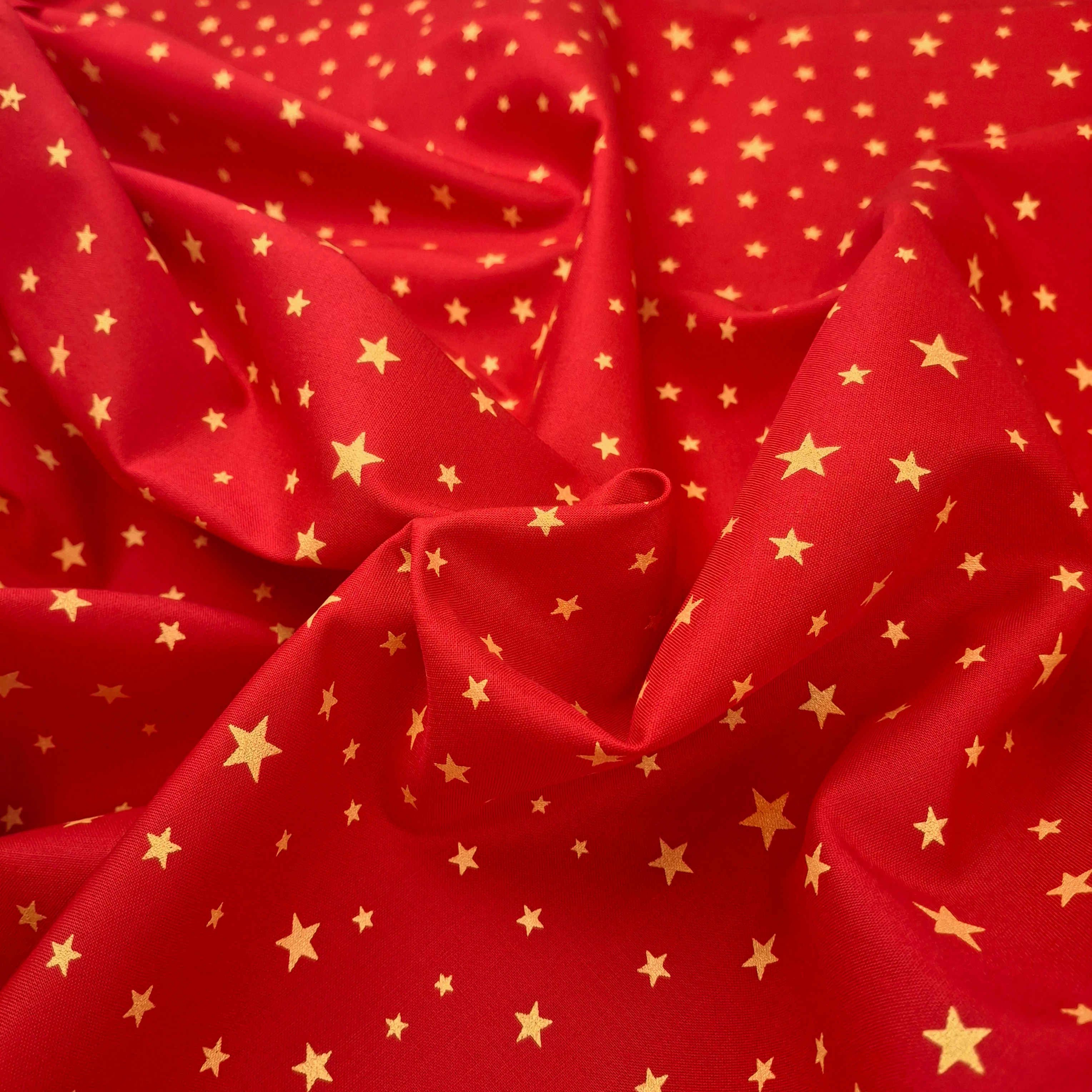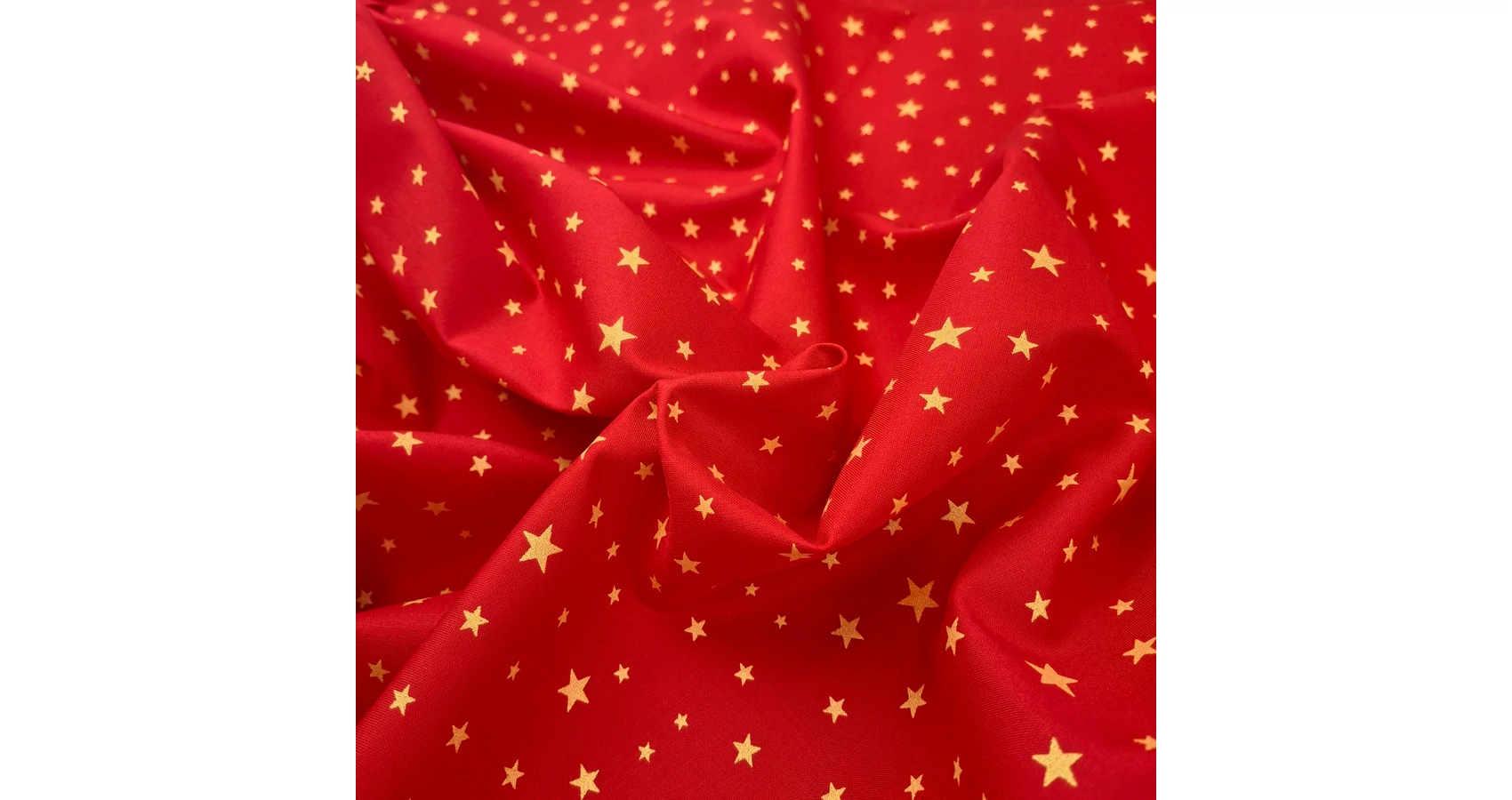 Pamutvászon, festett - Piros színben, arany csillagos mintával