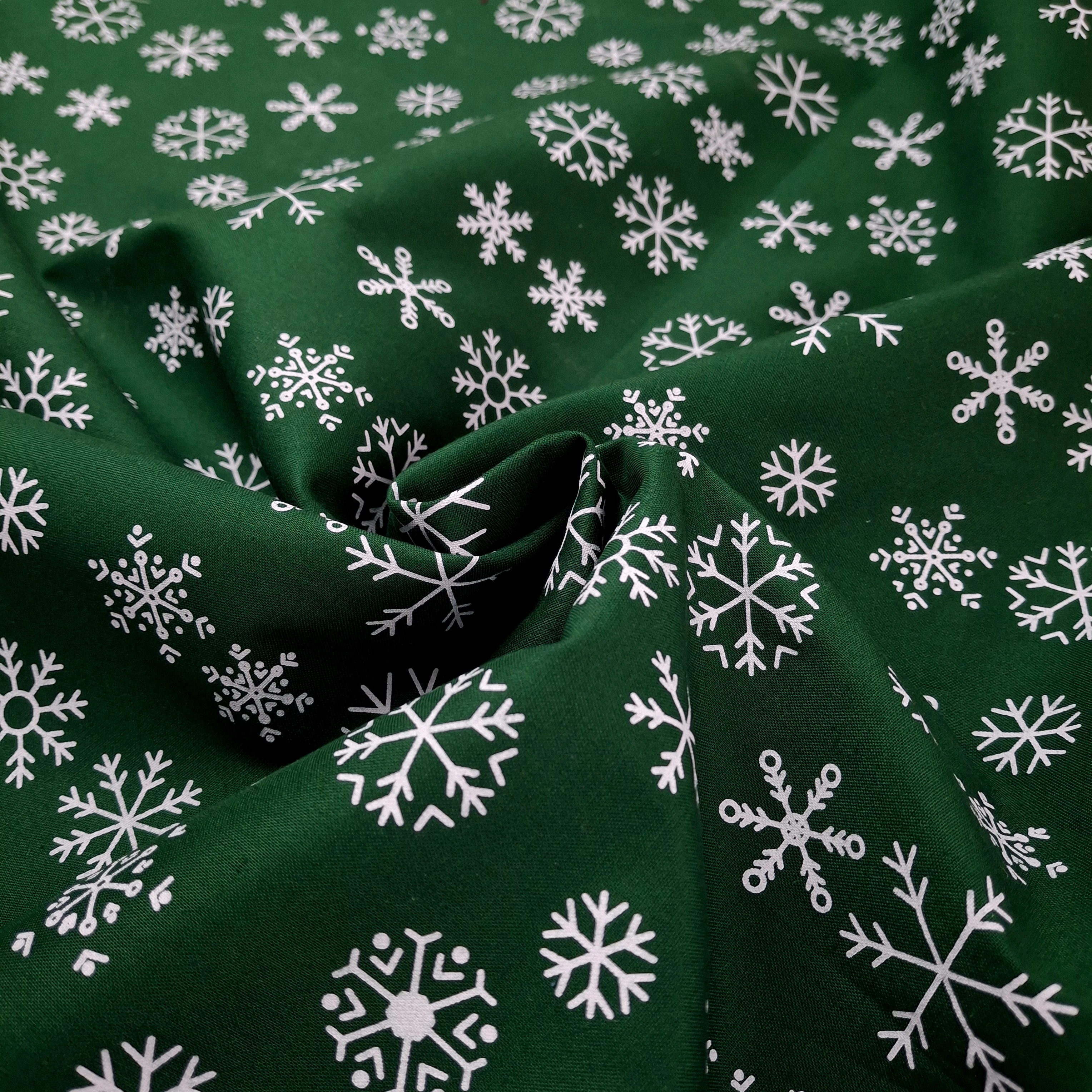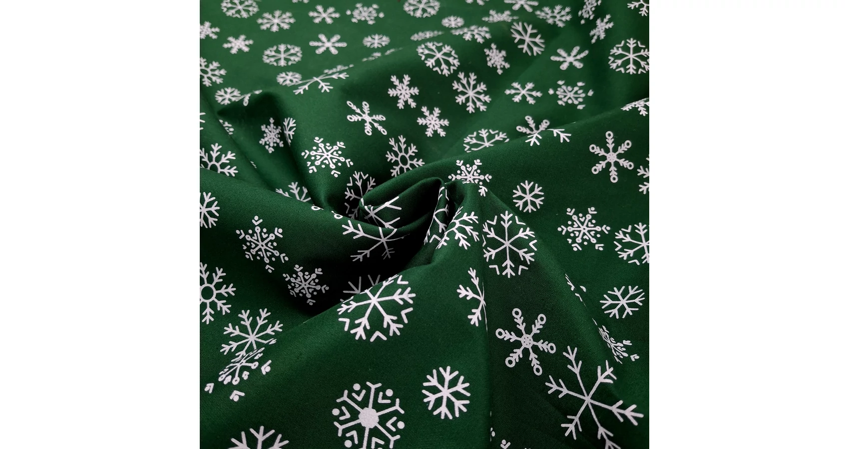 Pamutvászon, festett - Sötétzöld színben, hópehely mintával