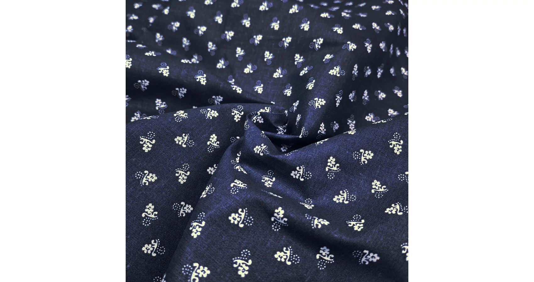 Pamutvászon - Kékfestő, pöttyös virágszál mintával, kék színben