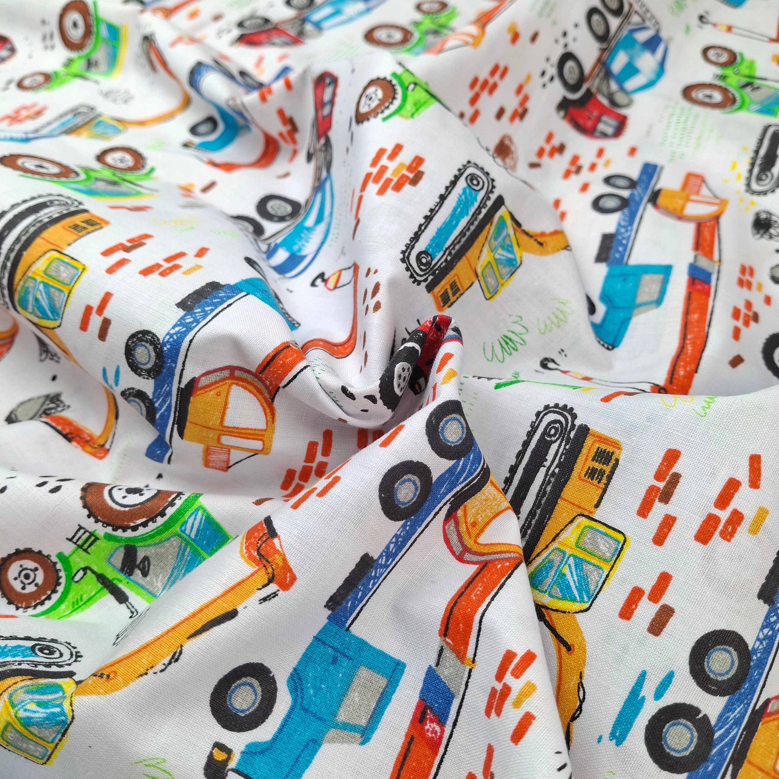 Pamutvászon – Színes pöttyökkel és kisautós mintával, fehér alapon