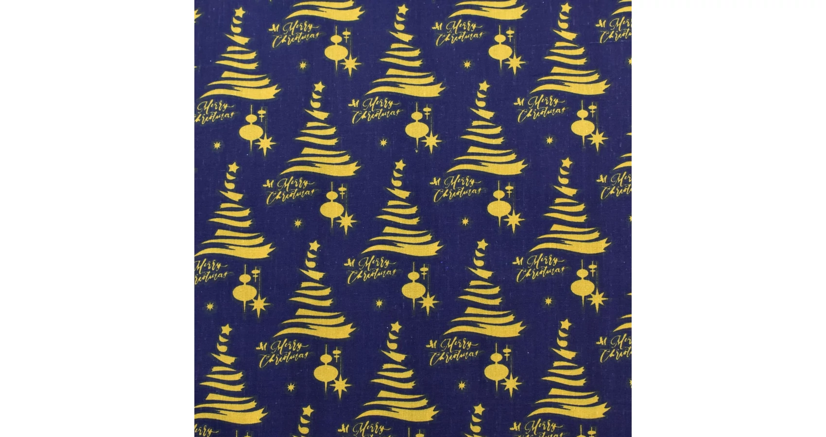 Karácsonyi pamutvászon méteráru aranysárga színű fenyőfa mintával. Kiváló alapanyag ruházati termékek, konyhai, illetve egyéb lakásdekorációs textíliák varrásához, de számos kézműves termék is készül belőle. Természetes anyag révén felhasználás előtt érdemes beavatni, mivel az anyag első mosása során 8-10%-os zsugorodással lehet számolni.
