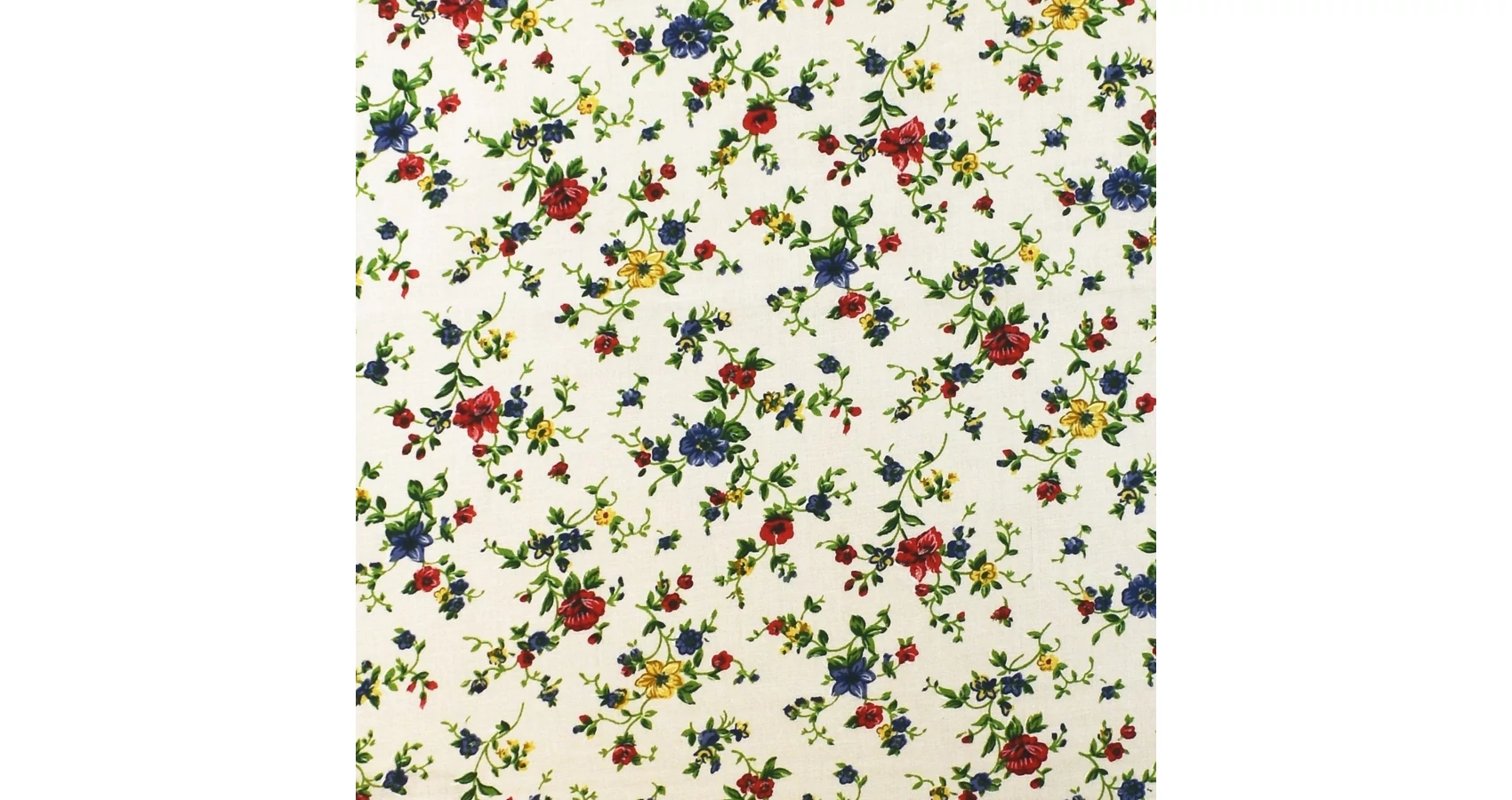 Pamutvászon méteráru fehér alapon színes kis virágos mintával. Sokoldalúan felhasználható, közkedvelt természetes alapanyagú méteráru. Kiváló ruházati termékek, konyhai, illetve egyéb lakásdekorációs textíliák varrásához és számos kézműves termék is készül belőle. Természetes anyag révén felhasználás előtt érdemes beavatni, mivel a textil az első mosáskor 8-10%-ot zsugorodhat.