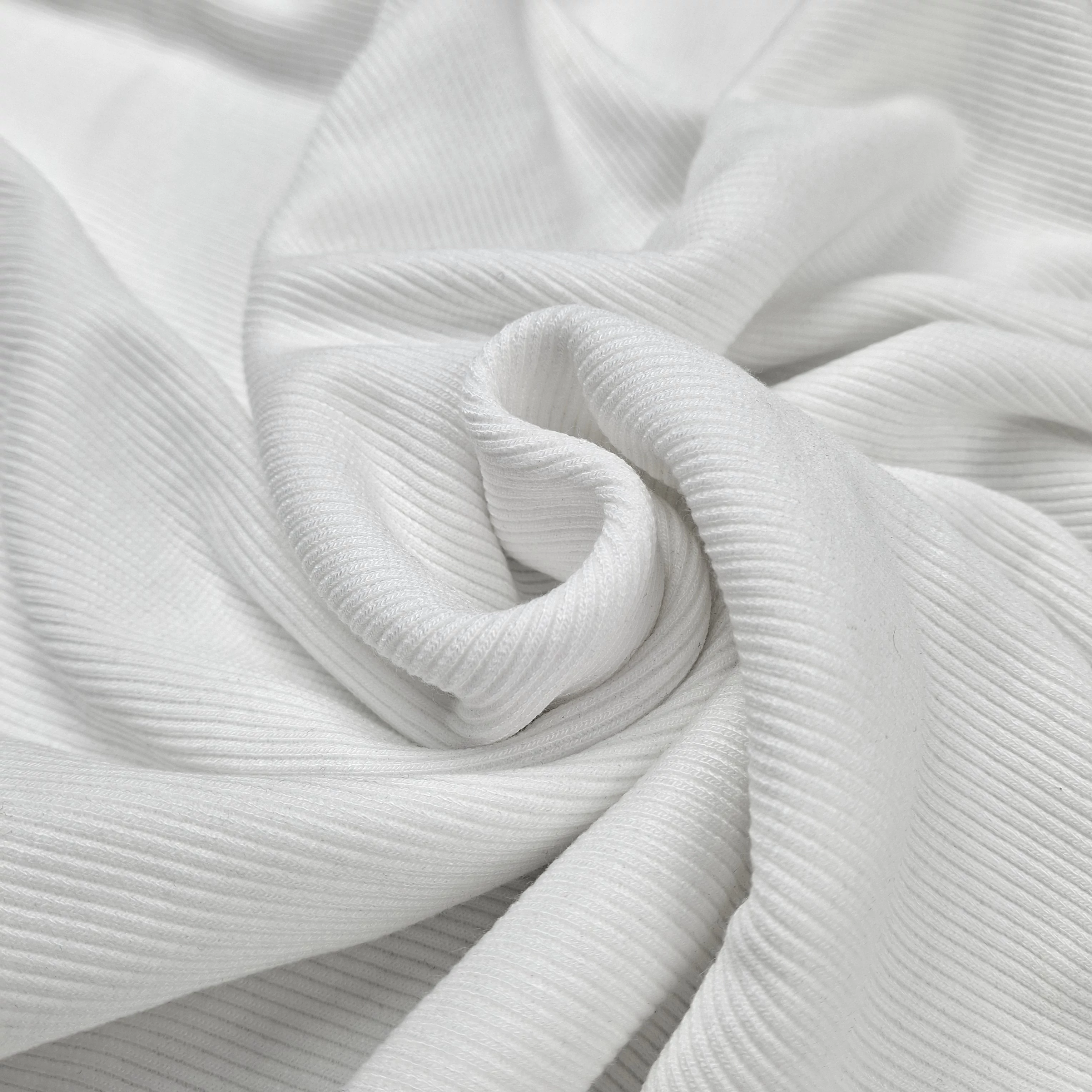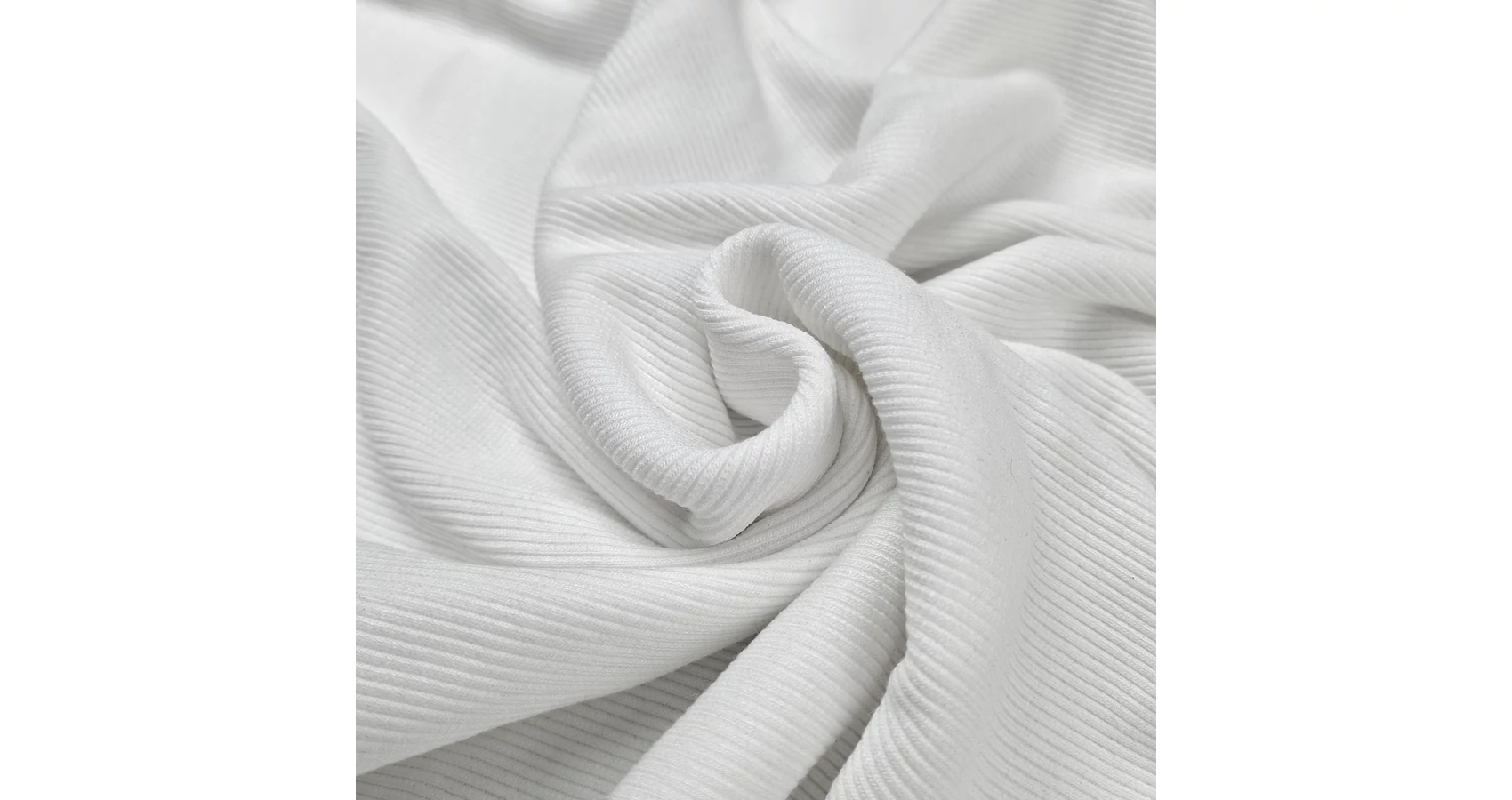 Körkötött passzé anyag fehér színben. Közepes vastagságú, matt felületű, mindkét irányban rugalmas kötött méteráru.