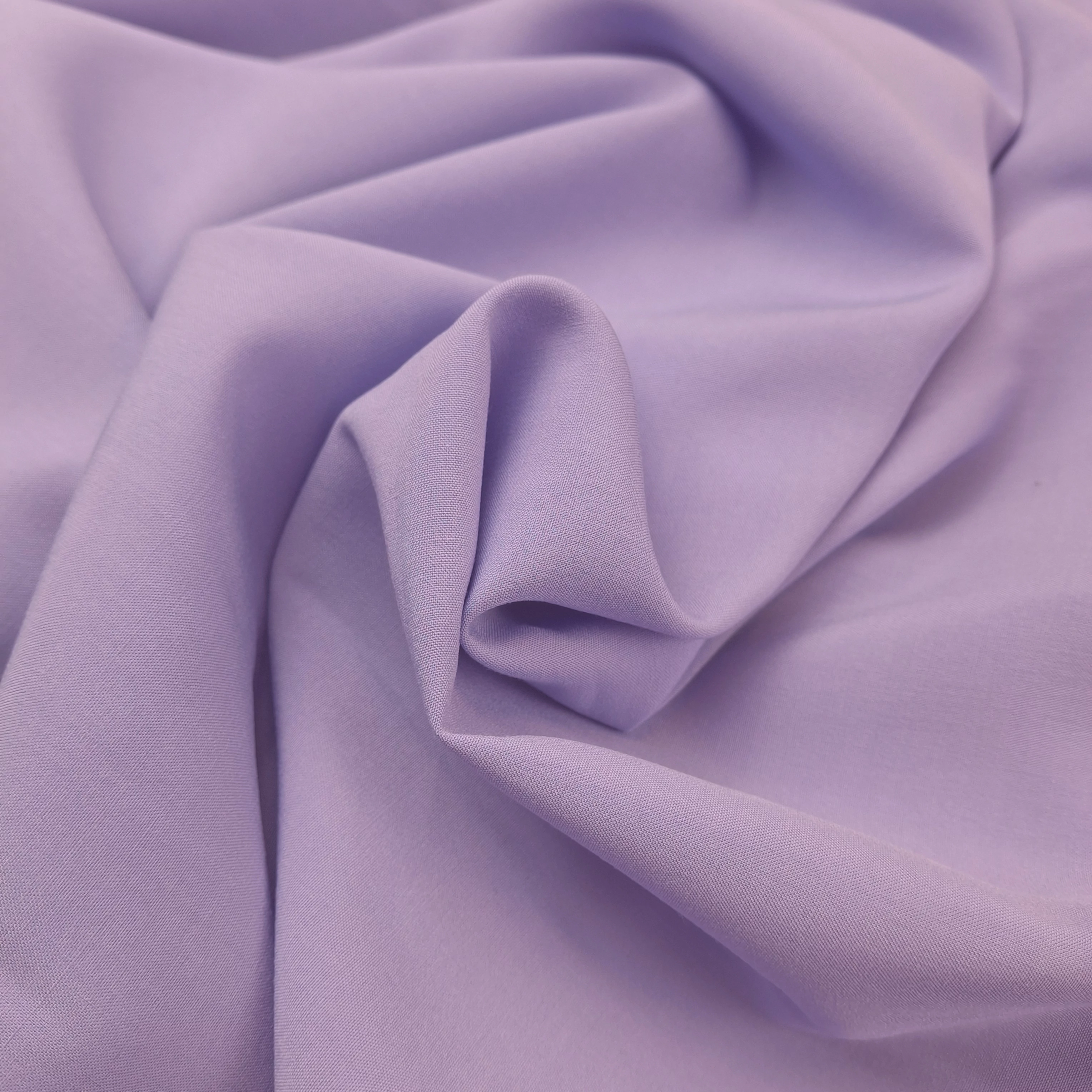 Viszkóz flokon méteráru levendula lila színben. Nem elasztikus, sima felületű, szép esésű, kellemes tapintású, viszkózosan hűvös érzetű textil. Jól szellőző, kellemes viseletű, könnyű lenge nyári anyag.