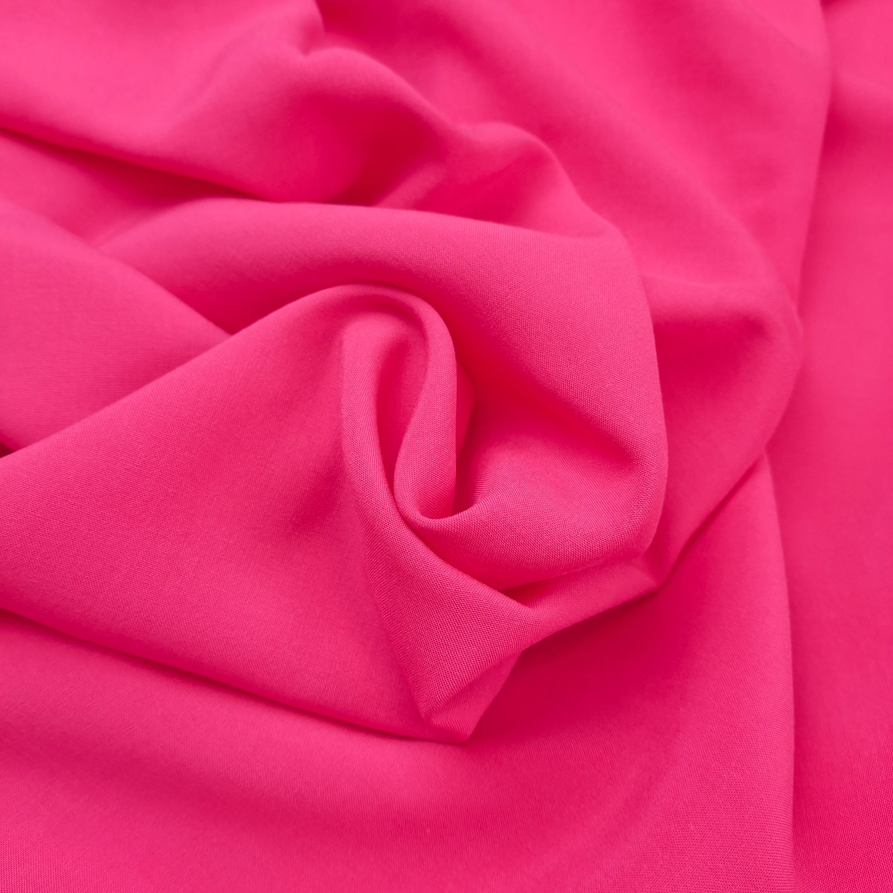 Viszkóz flokon méteráru pink színben. Nem elasztikus, sima felületű, szép esésű, kellemes tapintású, viszkózosan hűvös érzetű textil. Jól szellőző, kellemes viseletű, könnyű lenge nyári anyag.