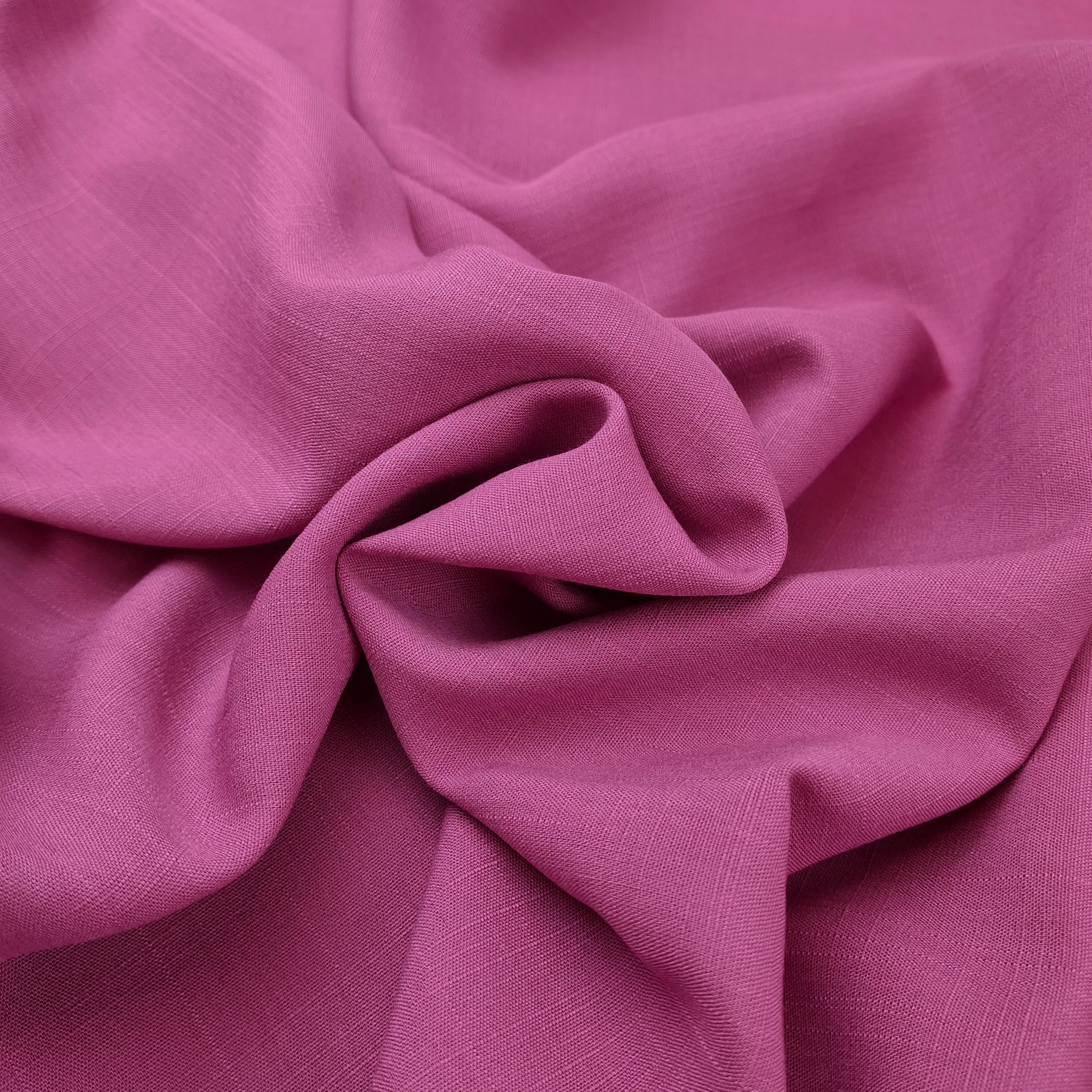 Viszkóz flokon méteráru szeder rózsaszín színben. Nem elasztikus, sima felületű, szép esésű, kellemes tapintású, viszkózosan hűvös érzetű textil. Jól szellőző, kellemes viseletű, könnyű lenge nyári anyag.