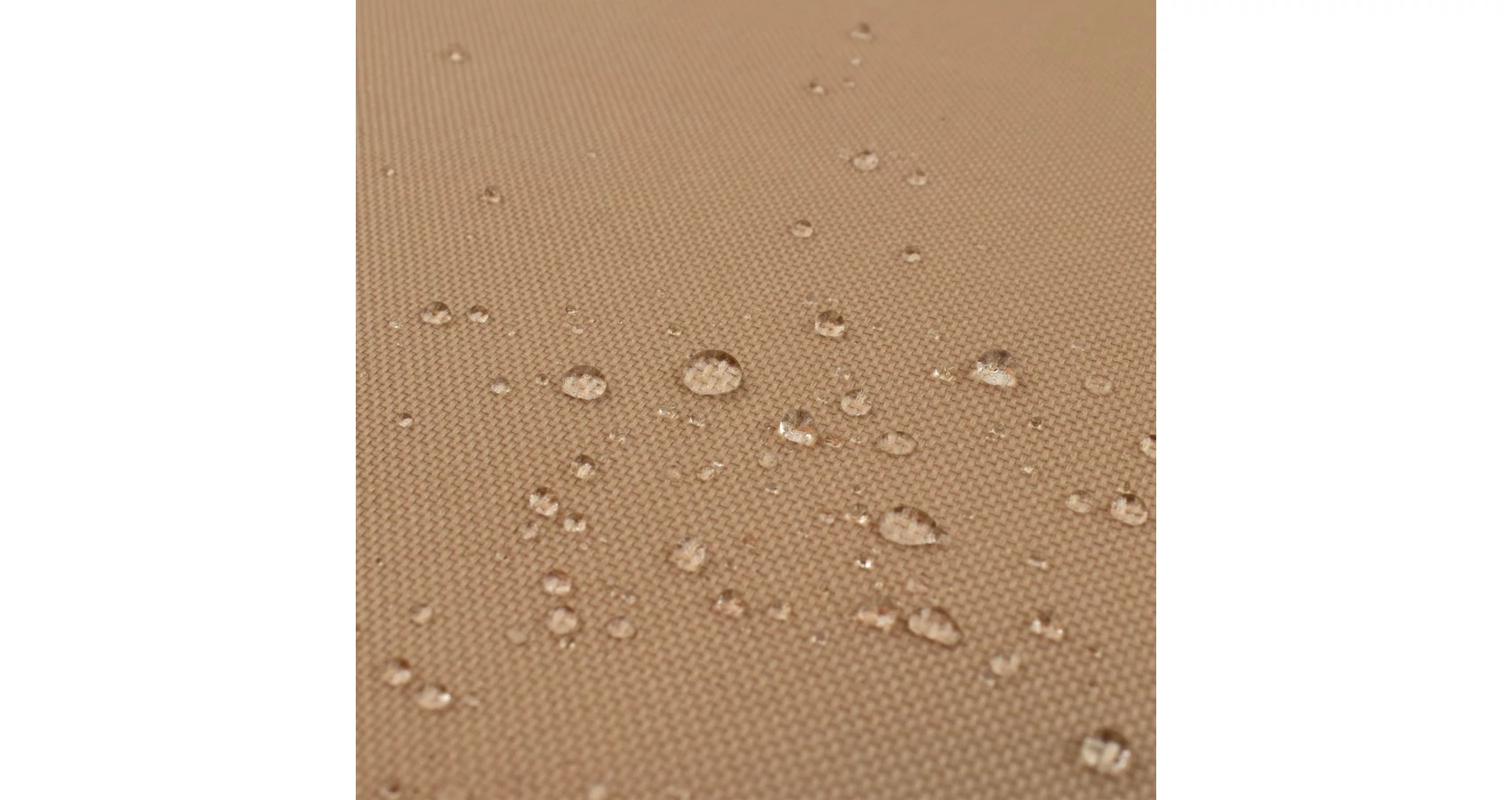Vízlepergető anyag drapp színben. Erős, jó tartású, strapabíró, közepesen merev anyag, mely háztartási géppel is jól varható. Az anyag hátulján PVC réteg található, ami biztosítja a vízzáró réteget. UV állósága 3,5, vízállóságát kb. 40 órán keresztül tartja meg.