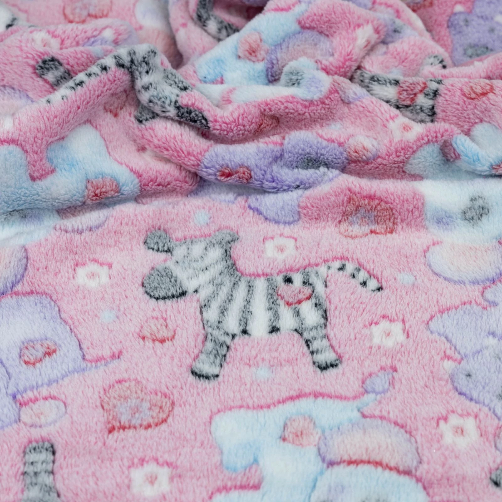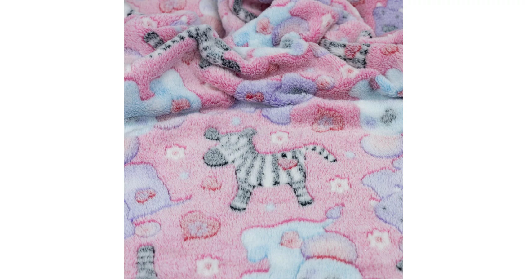 Wellsoft méteráru rózsaszín alapon elefánt, viziló és zebra mintával. A modern textilgyártási eljárásoknak köszönhetően a bőrrel érintkezve is kellemes érzést ad, igazán meleg, vastag, mégis könnyű téli textil. Vágáskor széle erősen szöszöl, de egy alapos kirázást követően akár szegni sem szükséges, mert széle nem foszlik.