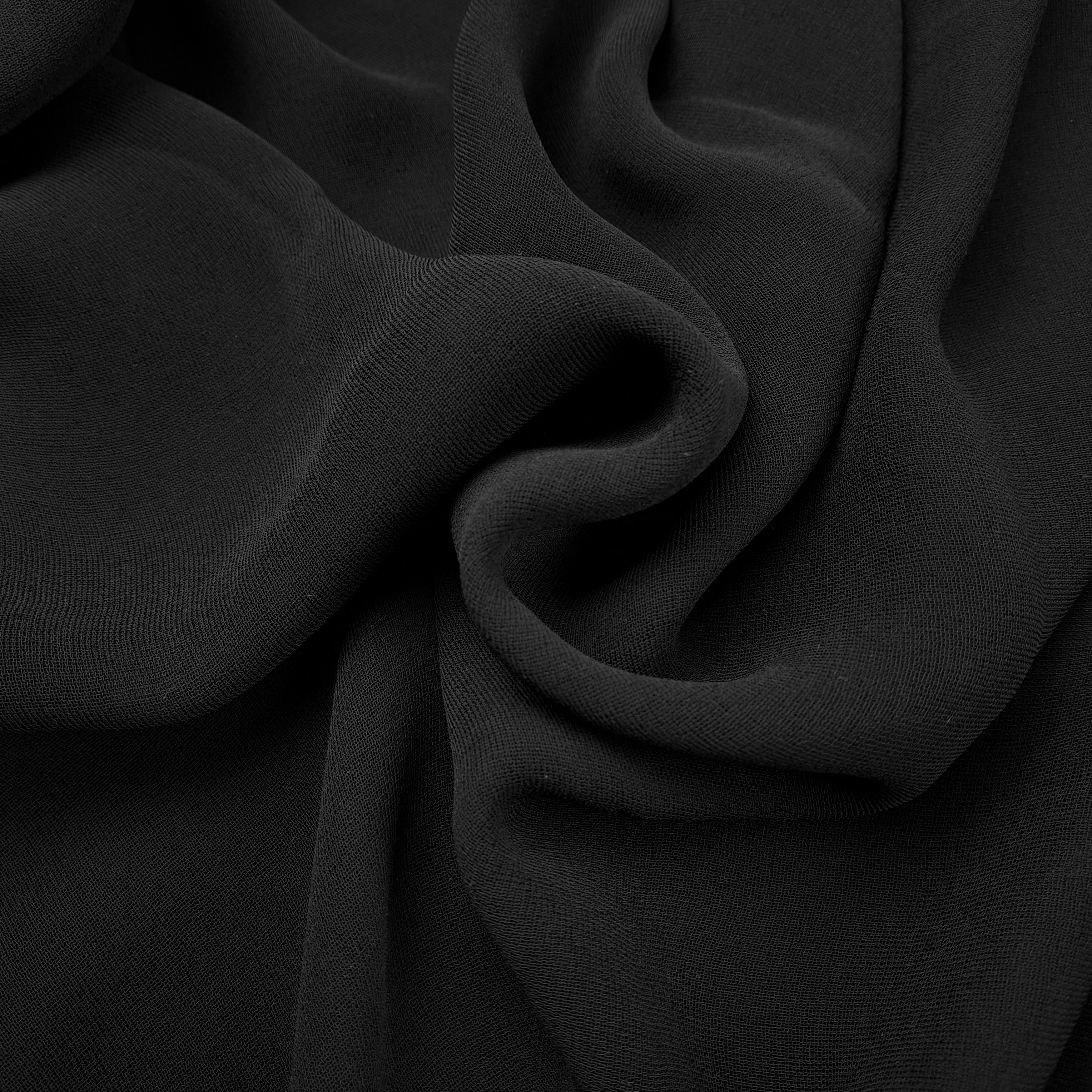 Elasztikus zsorzsett muszlin méteráru fekete színben. Elasztikus, áttetsző, lehelet vékony anyag. Zsorzsettes, szemcsés felületű. Finom esésű, lágy textil, mely gyönyörűen libben. Gyűrődésre nem hajlamos, szín és formatartó, elegáns női anyag. Inkább varrásban gyakorlottaknak ajánljuk és vékony (70-es) tűvel érdemes varrni. Ha a tű az anyag szálát meghúzza, az kézzel szépen visszagúzogatható.